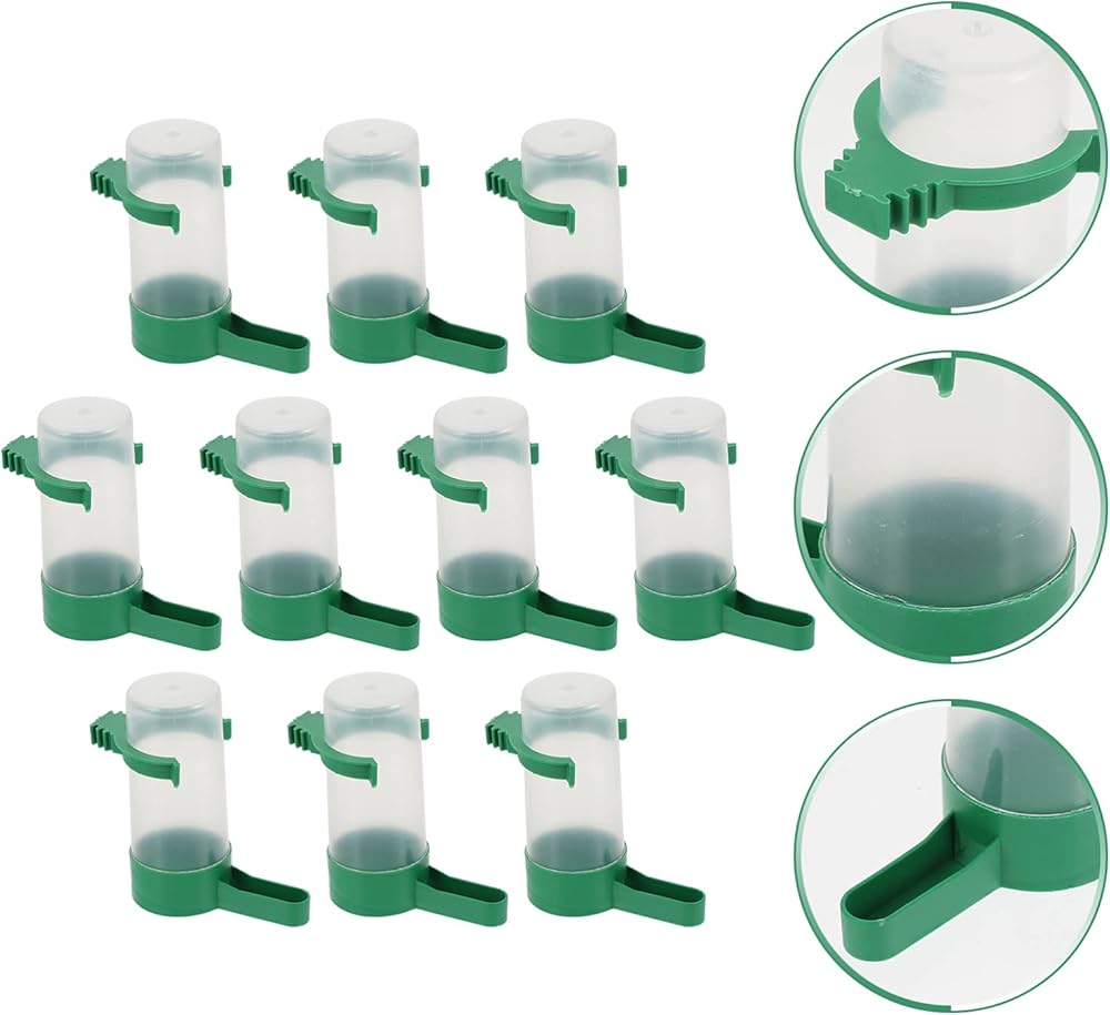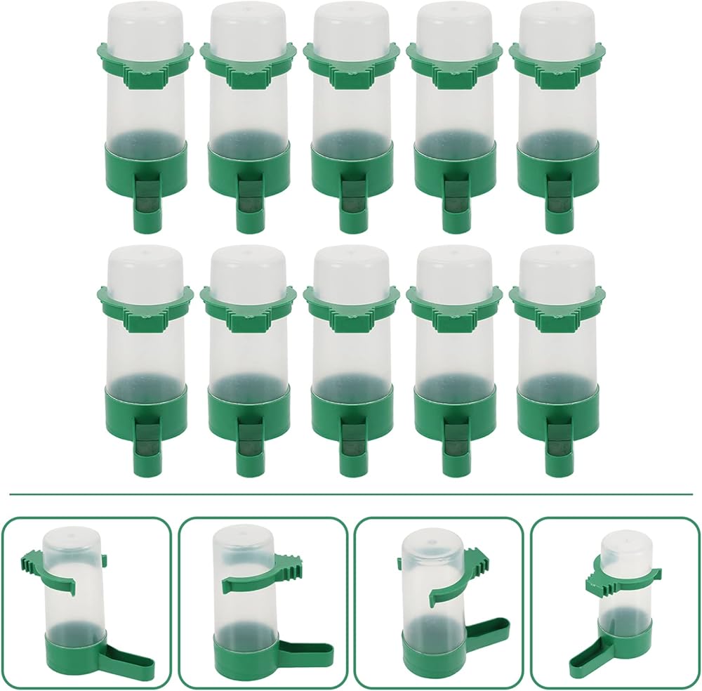 Alipis Bird Waterer الطيور موزع المياه شنقا الطيور قفص كوب التلقائي الطيور المياه المغذية الببغاء وعاء الطعام للببغاء الكناري العصافير الببغاء، 10 قطع الطيور المياه المغذية