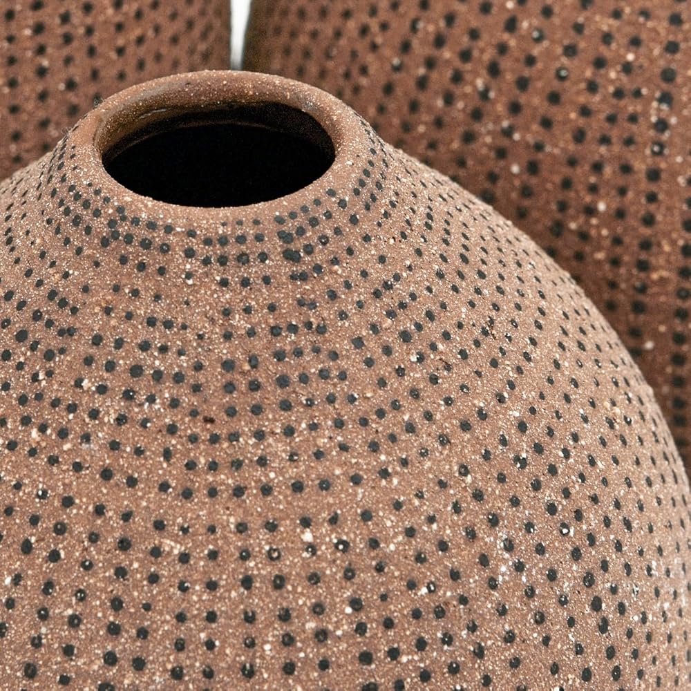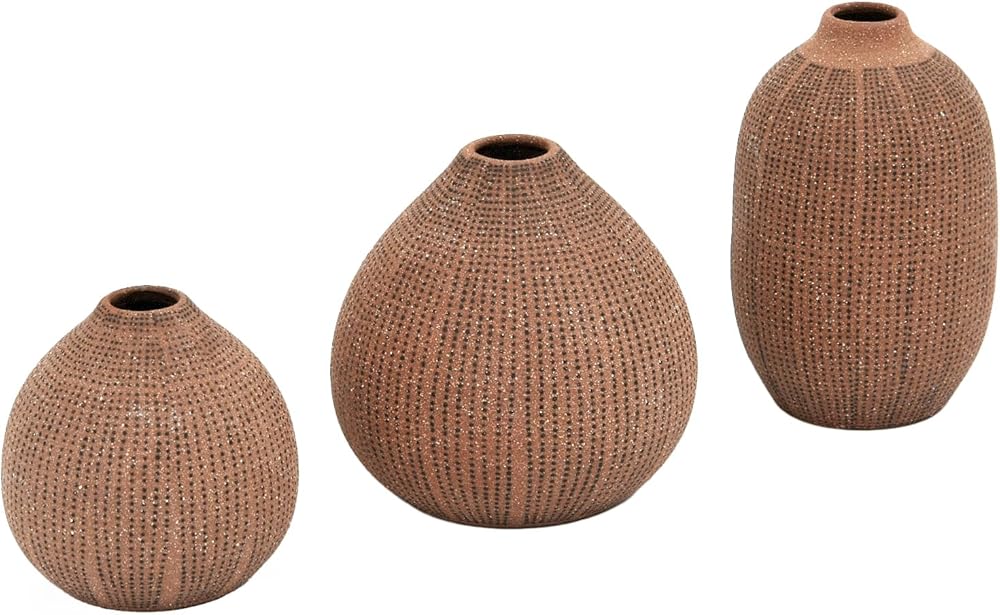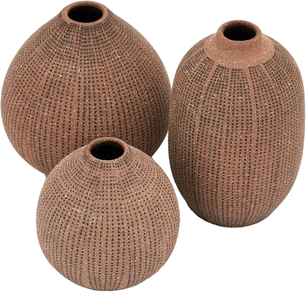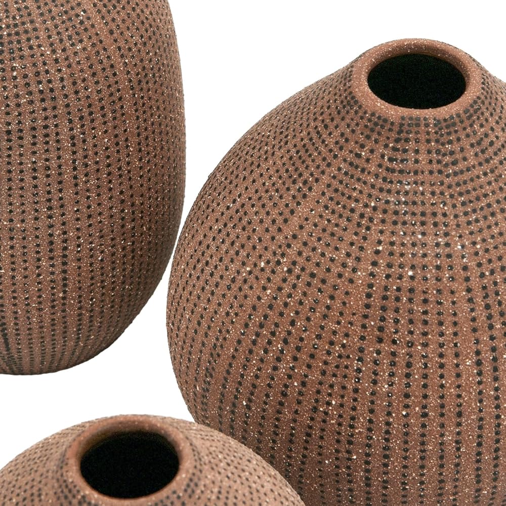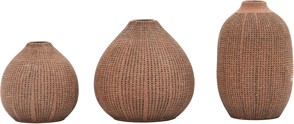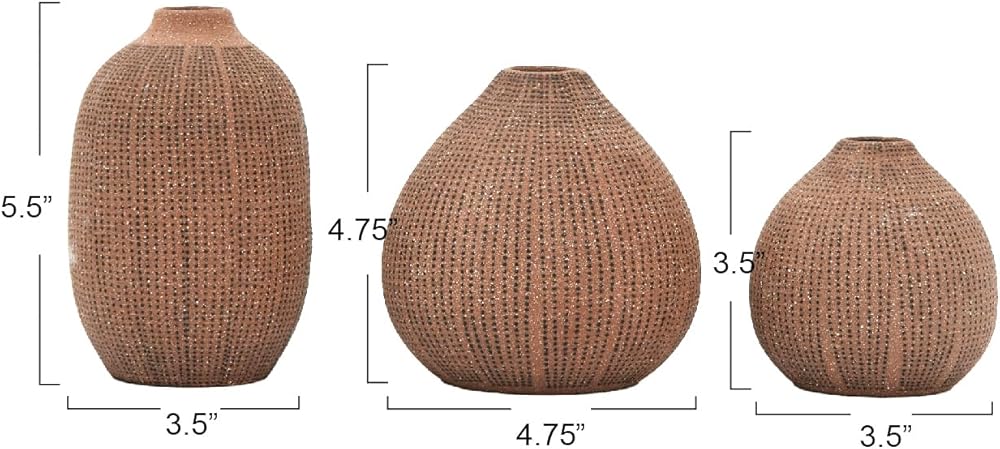 مزهريات حجرية مزخرفة من Creative Co-Op، مجموعة من 3 قطع، أحمر الخدود، بني