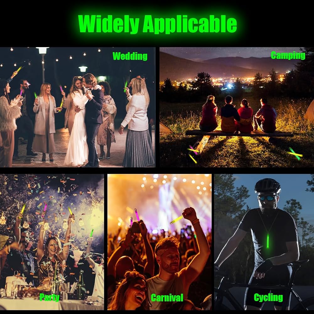 • ✨Widely Application: The glow sticks are perfect for all kinds of night parties, you can use them to decorate indoor parties and create atmosphere, such as birthday party, wedding party, Halloween night, Christmas eve, vocal concert and so on. It can also serve as a warning for night activities, such as night riding activities, camping, and emergencies such as power outages.