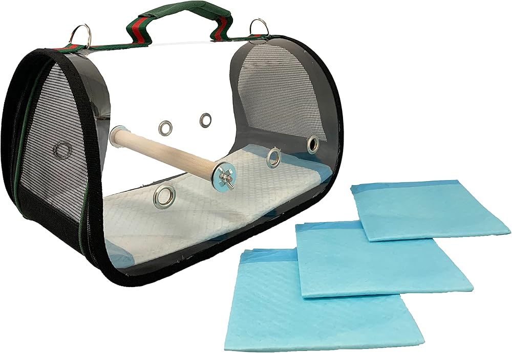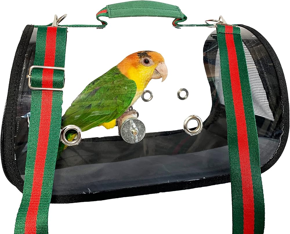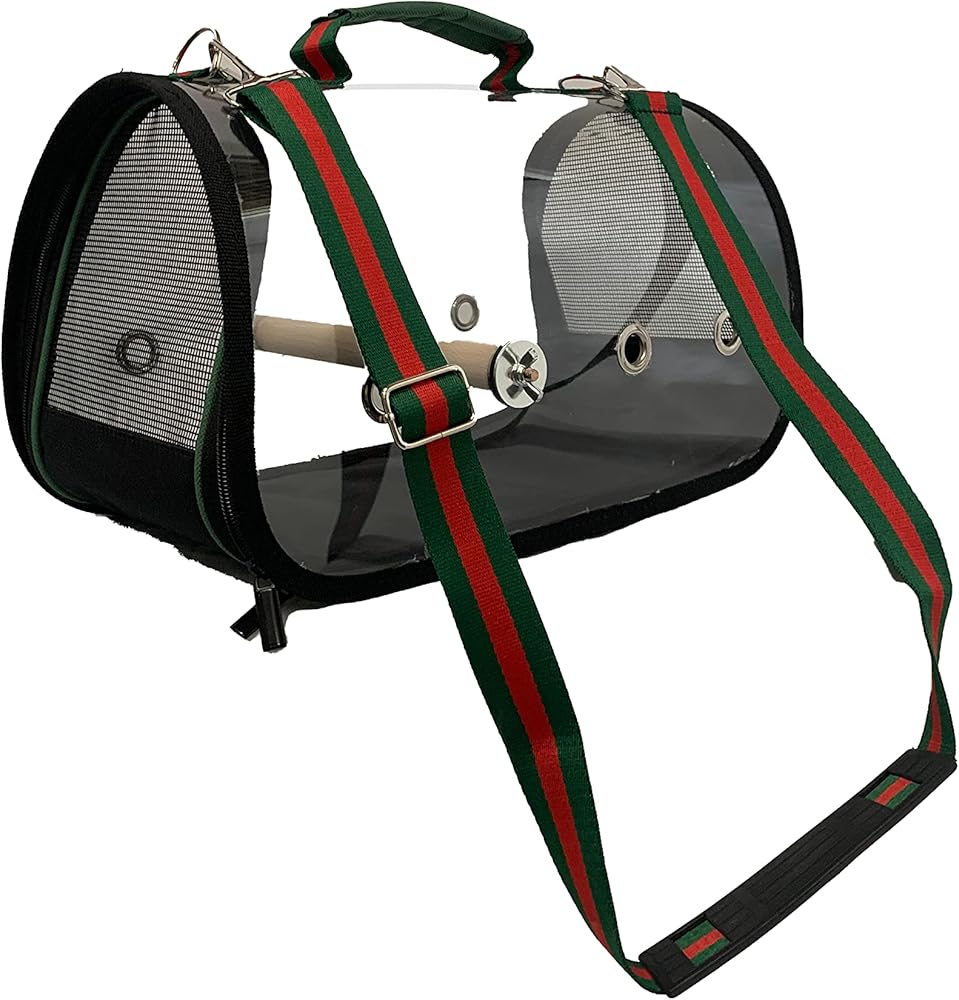 تصميم شفاف يسمح لك برؤية حالة ببغاءك والتفاعل مع صديقك المكسو بالريش. الحزام يجعله مريحًا لتعليقه بجانبك.
