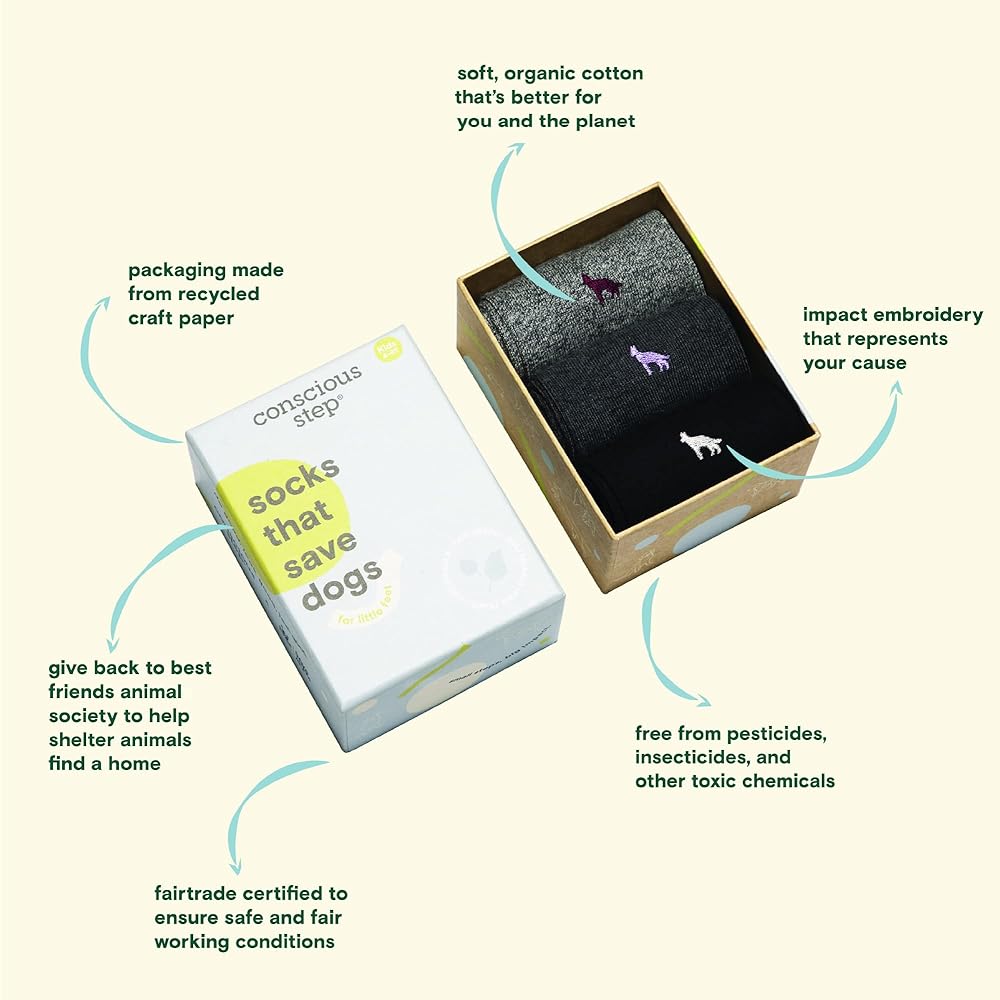 جوارب دائرية من القطن العضوي للشباب من Conscious Step للأطفال | كل زوج يدعم شركائنا غير الربحيين | صندوق الهدايا
