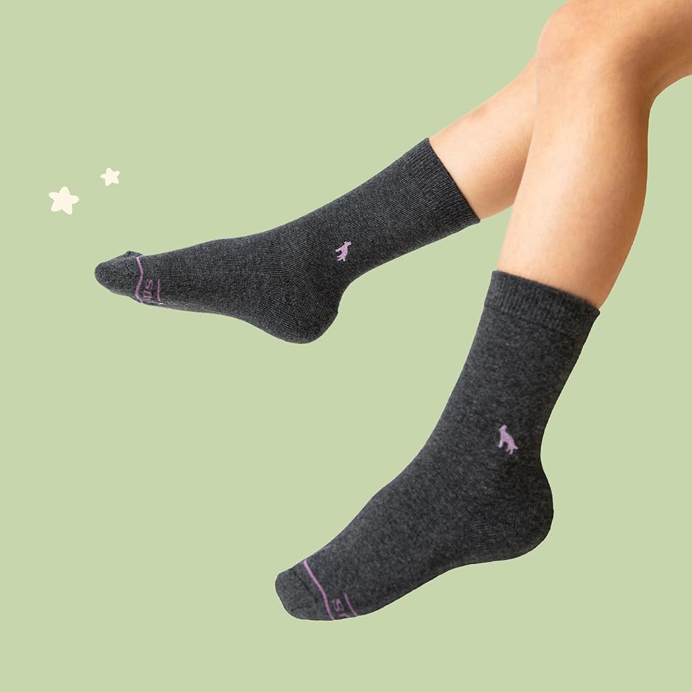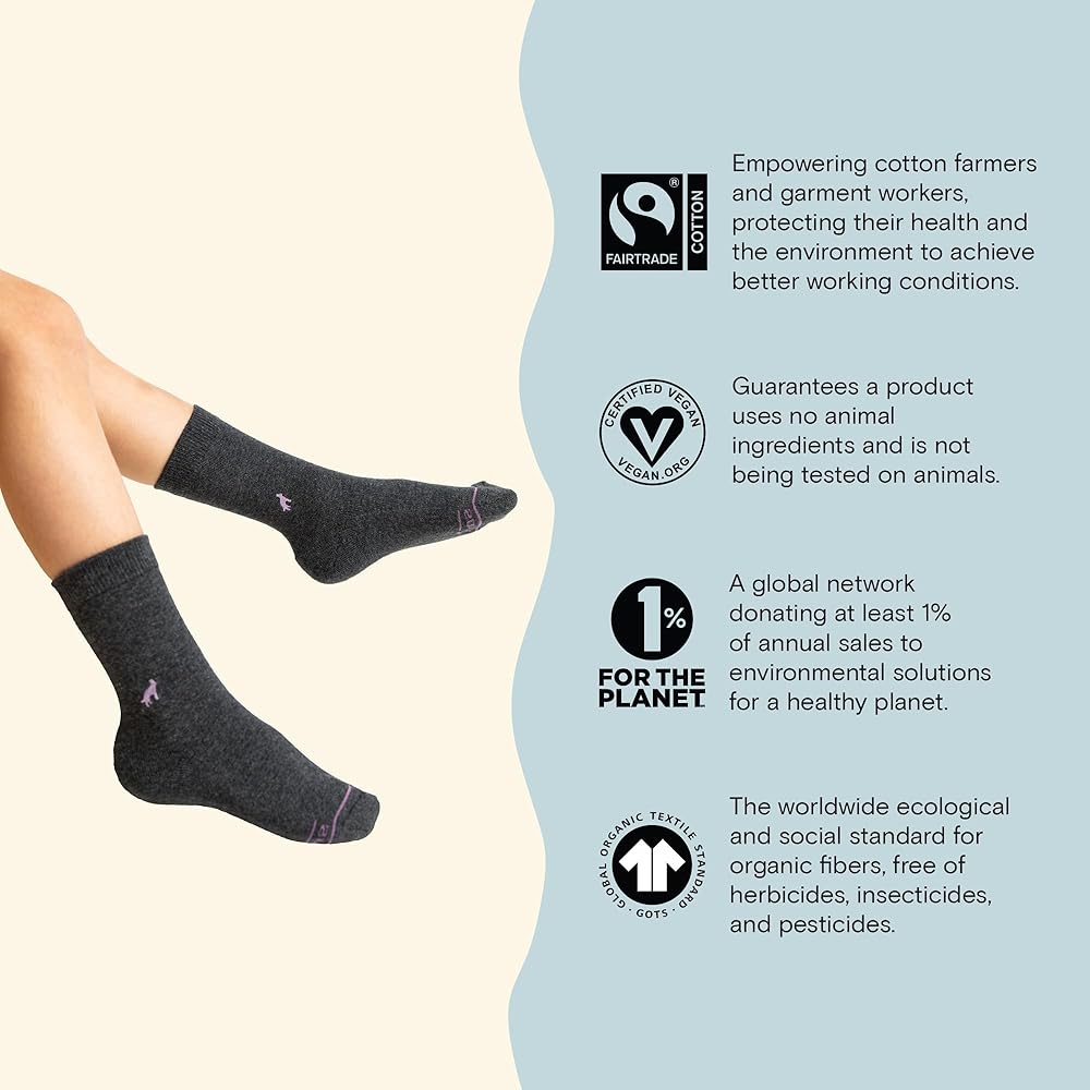 • راحة فائقة: مصنوعة من نسيج عالي الجودة، بما في ذلك 75% قطن عضوي من التجارة العادلة، و23% بوليستر معاد تدويره، و2% إيلاستين، توفر هذه الجوارب الدائرية راحة استثنائية طوال اليوم، مما يحافظ على قدميك دافئتين وجافتين. المقاسات تشمل: 7-10 سنوات، المقاسات 2-5