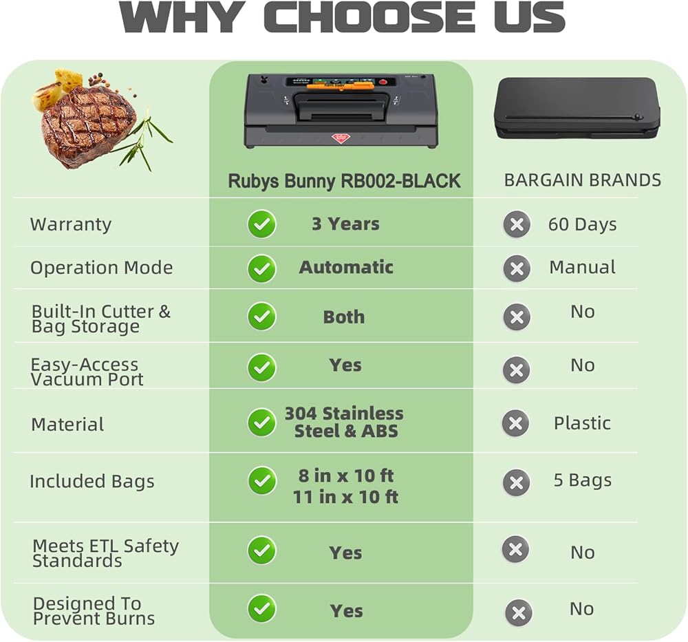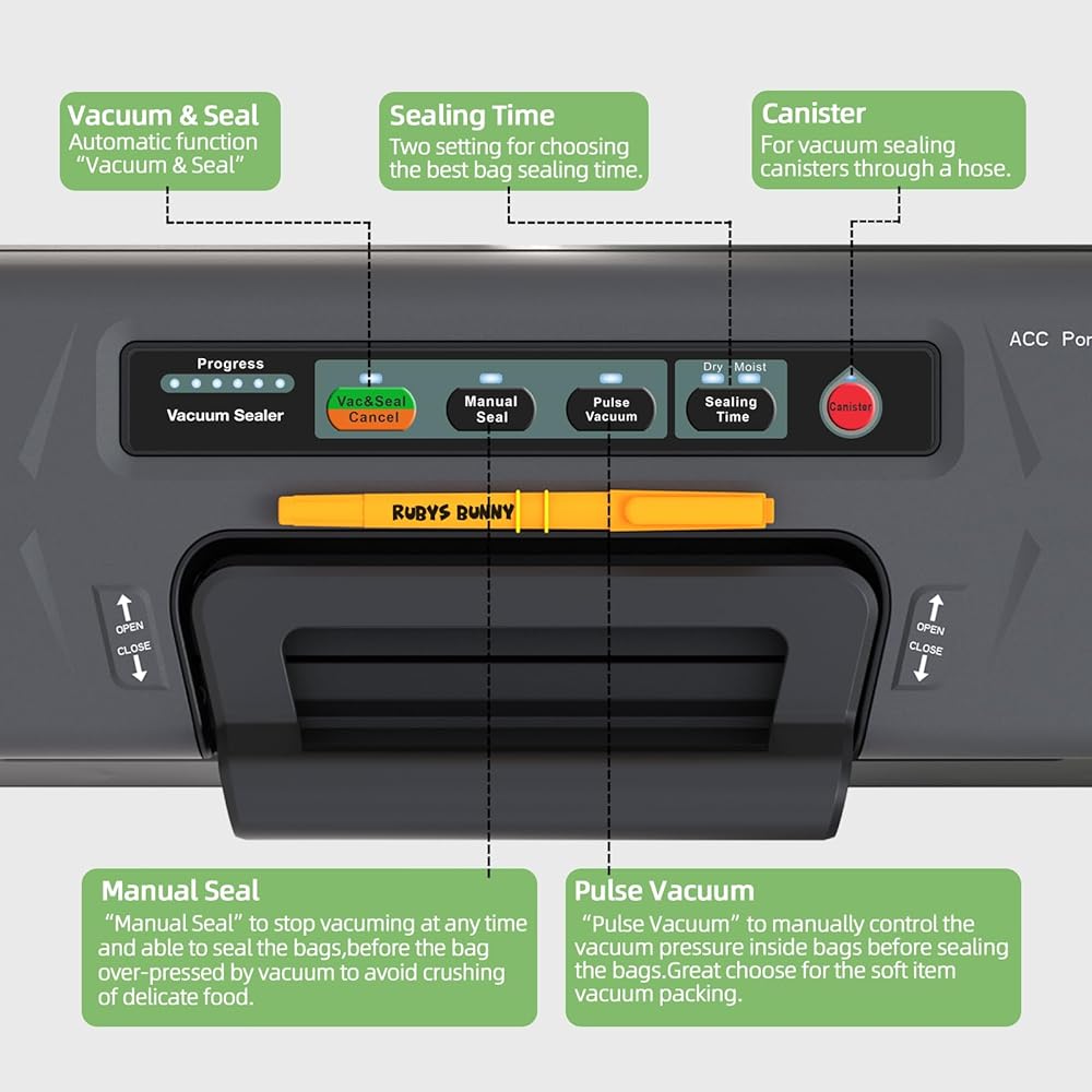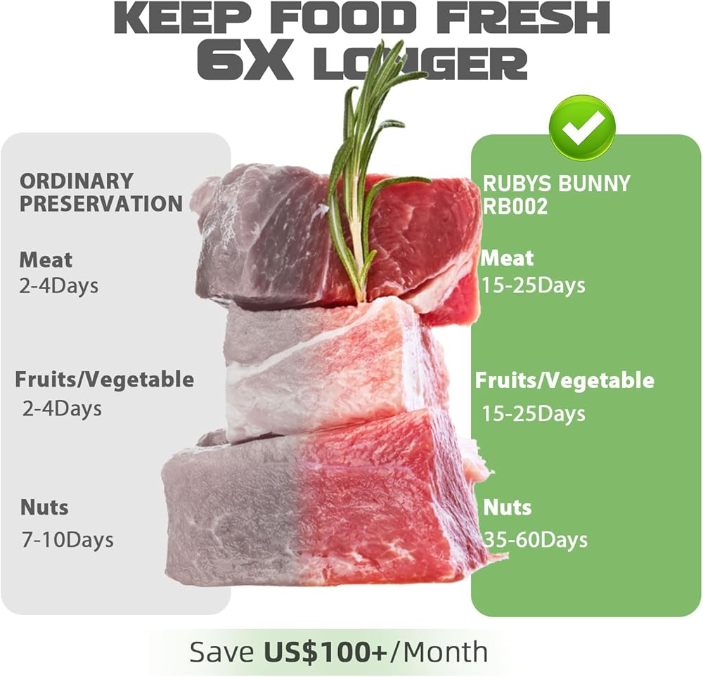 【محتويات العبوة】ماكينة تفريغ الطعام من روبيز باني، قطاعة مدمجة ومساحة تخزين لأكياس التفريغ. وهي مجهزة أيضًا بلفة واحدة مقاس 8 × 10 قدم ولفة واحدة من أكياس المكنسة الكهربائية مقاس 11 × 10 قدم (خالية من مادة BPA). وهي مجهزة أيضًا بمعدات خرطوم الشفط الخارجي وحلقة من وسائد الختم الاحتياطية. يتم تضمين دليل المنتج أيضًا. في نفس الوقت، صندوق التغليف الخاص بنا هو صندوق هدايا مصمم خصيصًا من قبل المصممين المدعوين. سواء قمت بشرائه لاستخدامك الخاص أو كهدية لصديق، فهو خيار جيد.