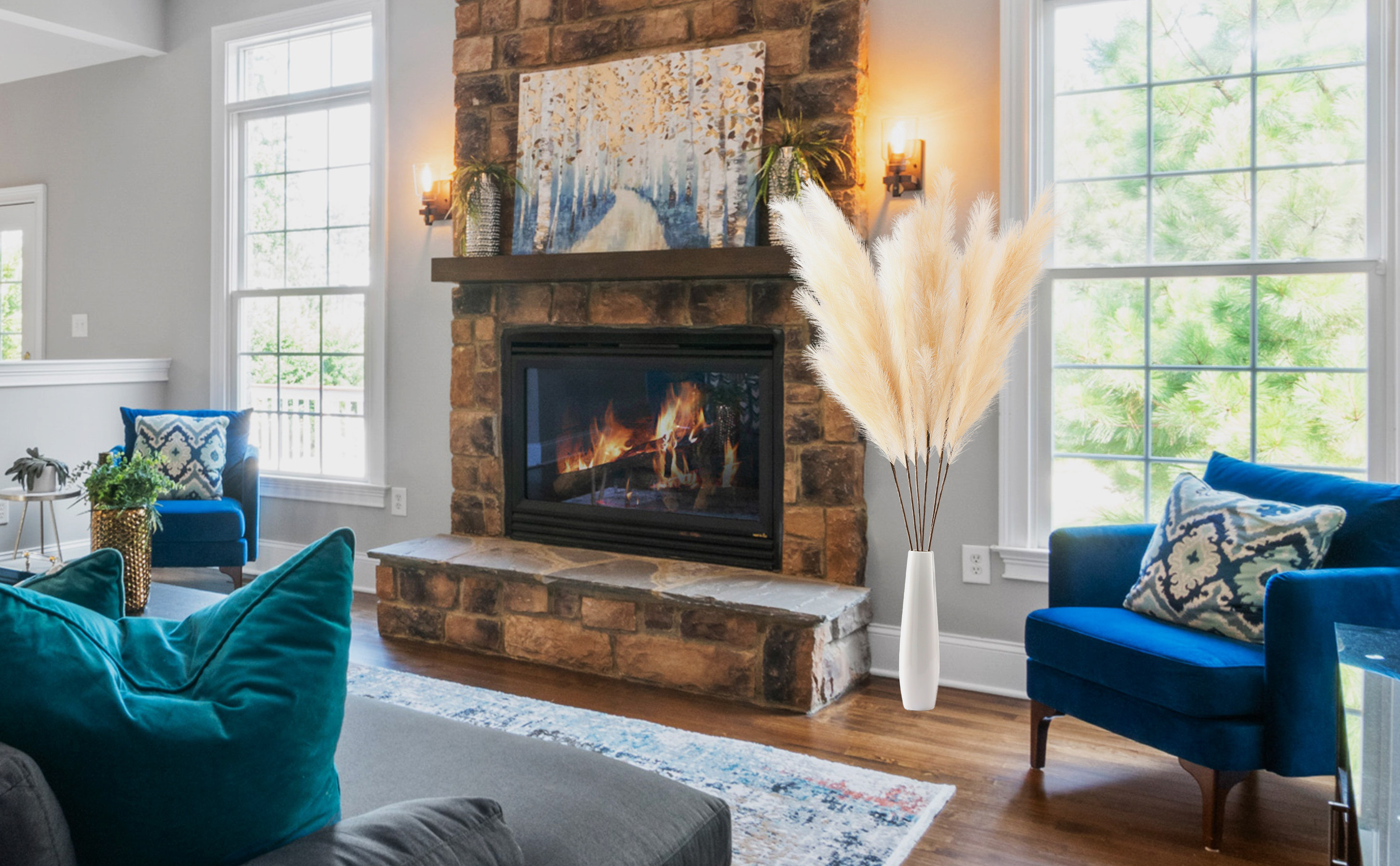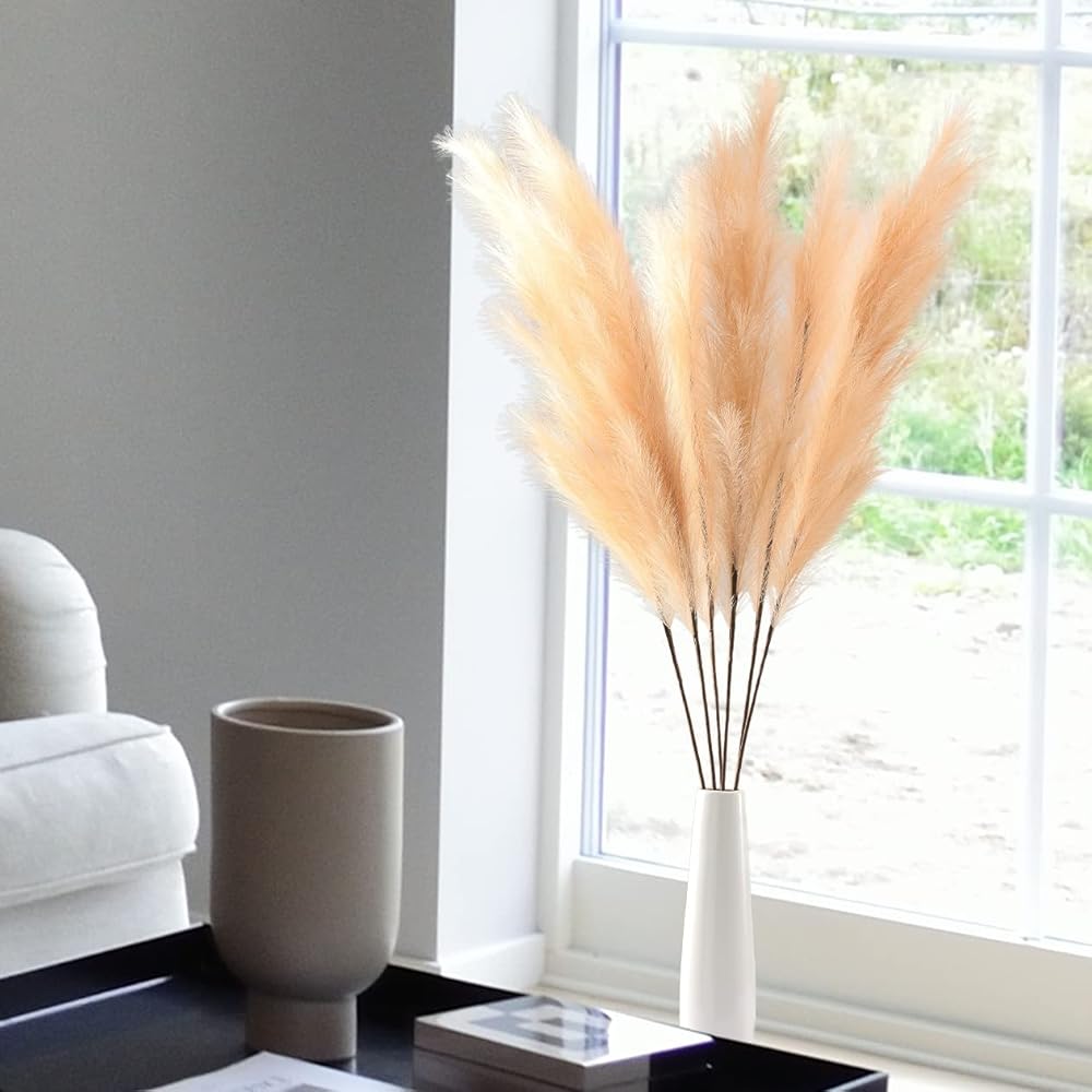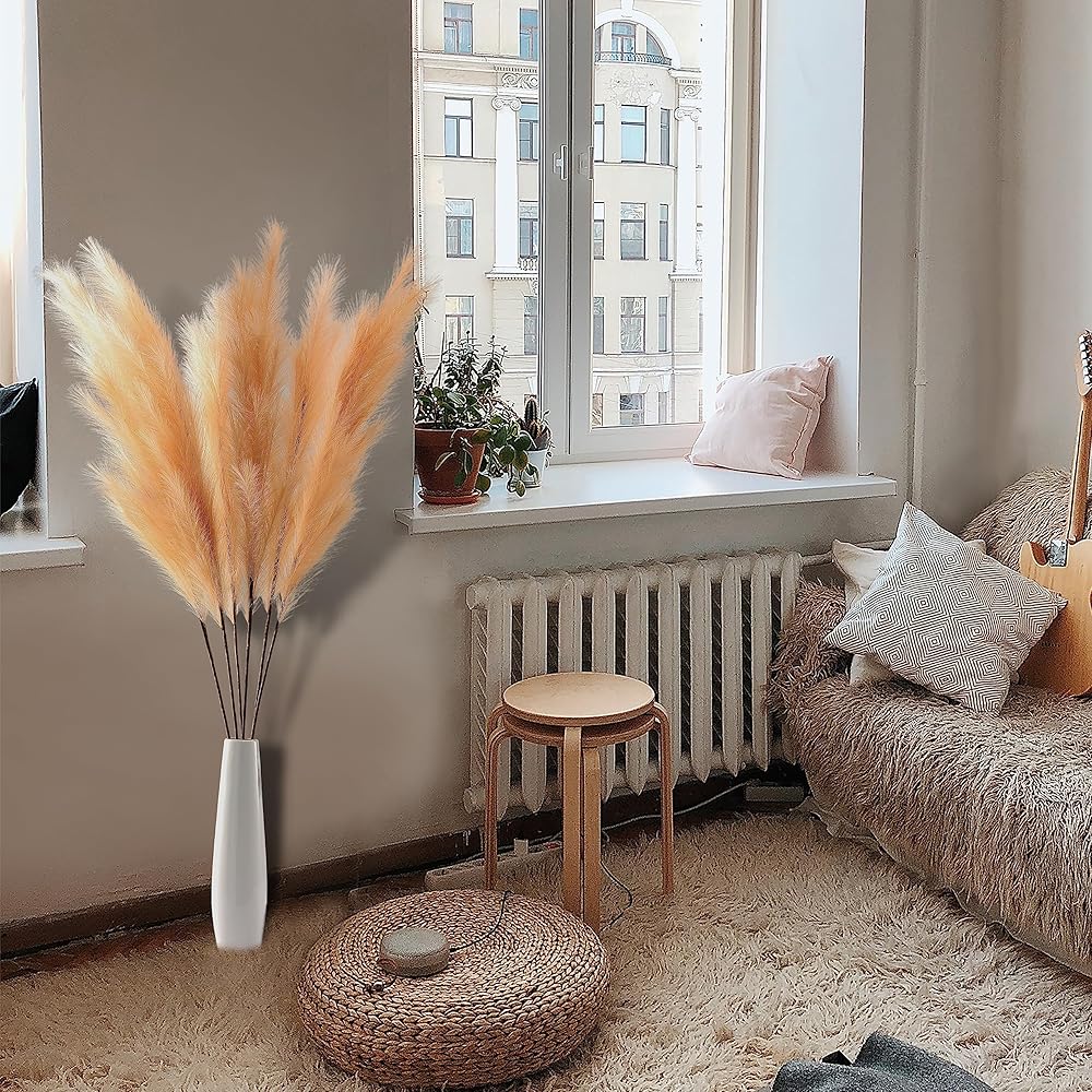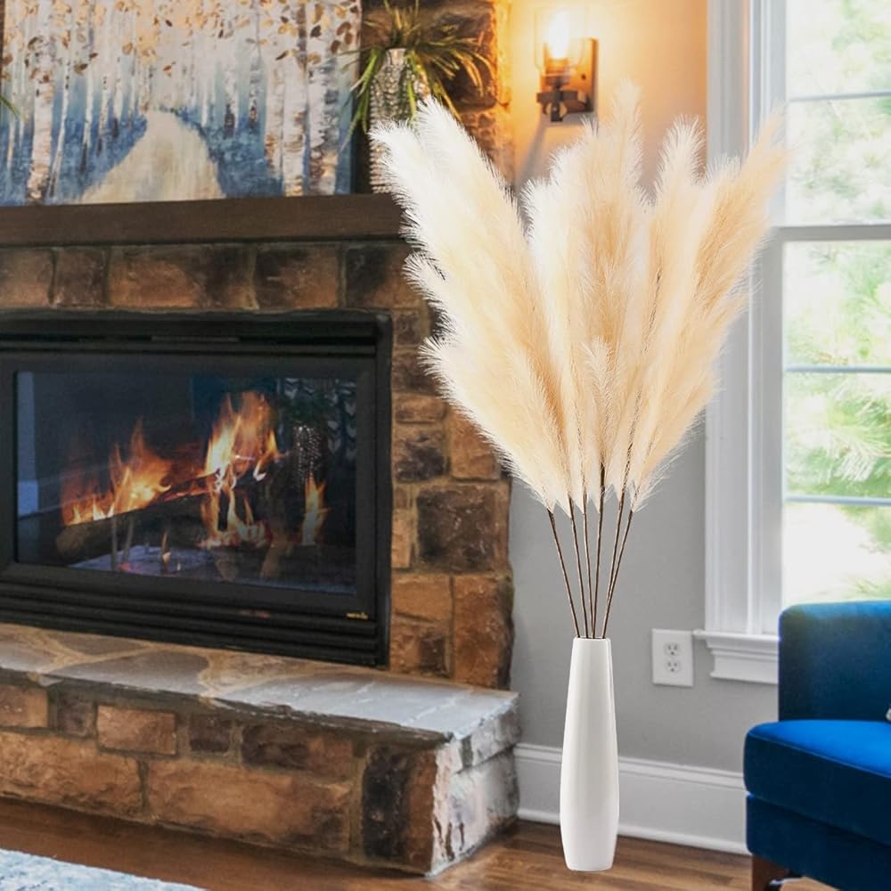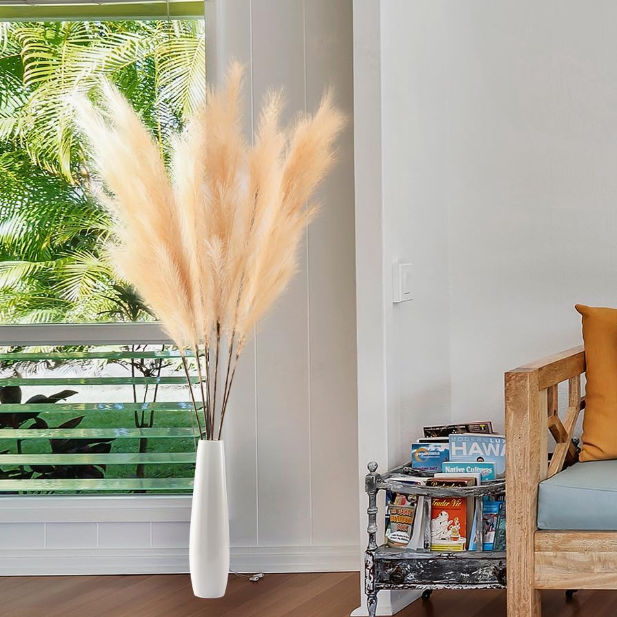 • 【PRODUCT FEATURES】Our tall faux pampas grass is fluffy and looks natural, reacting to its environment to create that breezy chic appearance without any hassle. DIY your boho decor or rustic home decor as your wish.
