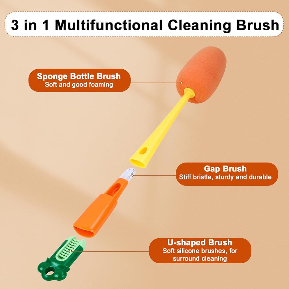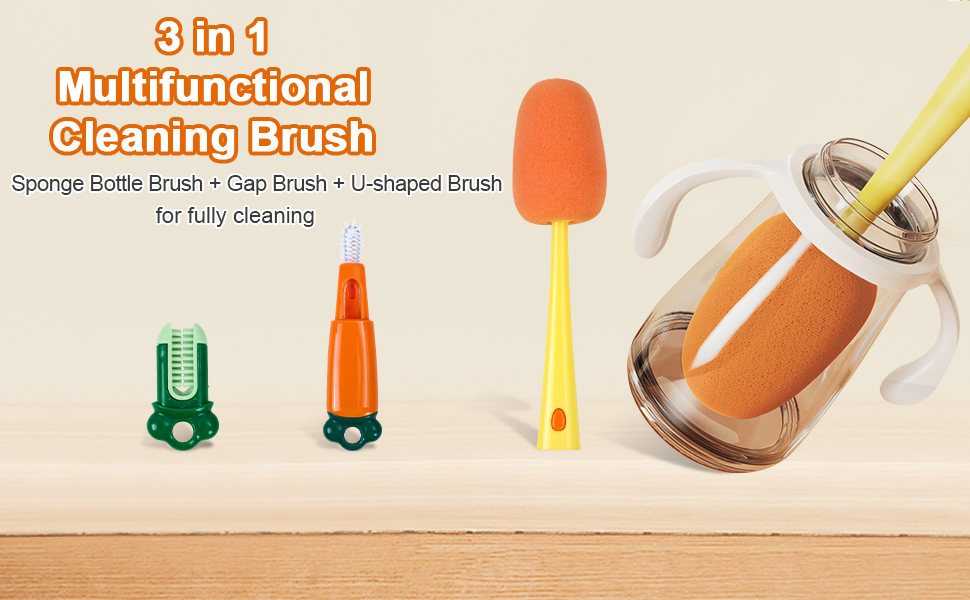 Baby Bottle Nipple Cleaner: The built-in ridged cleaner makes cleaning baby bottle nipples quick and effortless. Reach those small spaces!