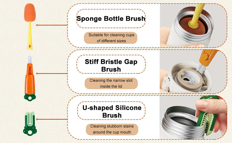 U Soft Rubber Cup Mouth Brush: Clean the stubborn stain around the cup mouth easily.