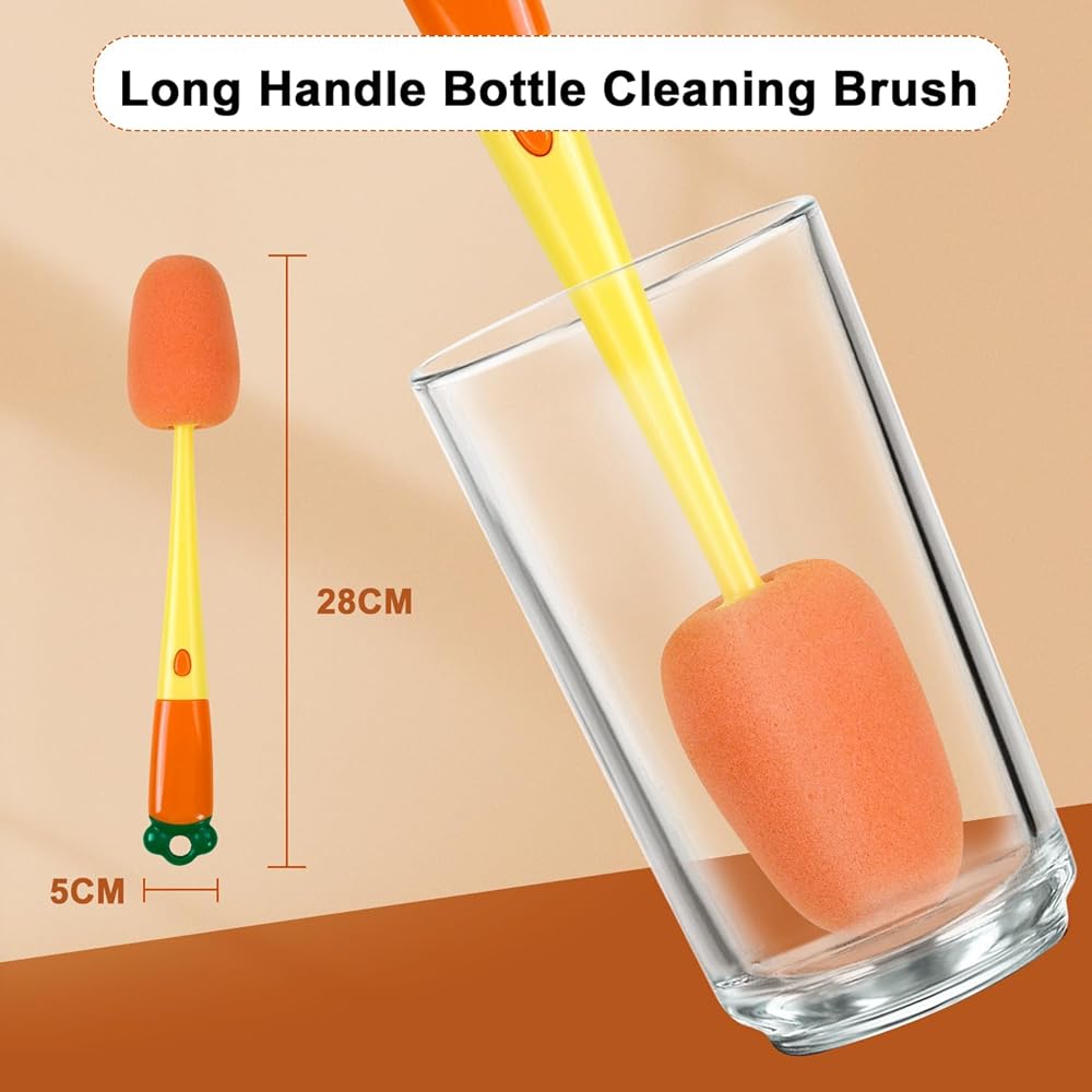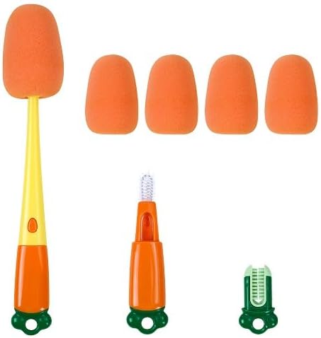Baby Bottle Brush with Replacement Sponge: Reusable sponge with another replacement sponge for thoroughly cleaning both plastic and glass bottles for a few months