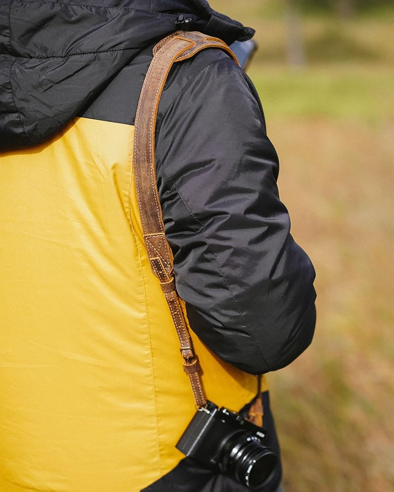 حزام كتف ورقبة للكاميرا مصنوع يدويًا من جلد البقر الشمعي من بول ستوريز، حزام كاميرا من الجلد المحبب بالكامل قابل للتعديل