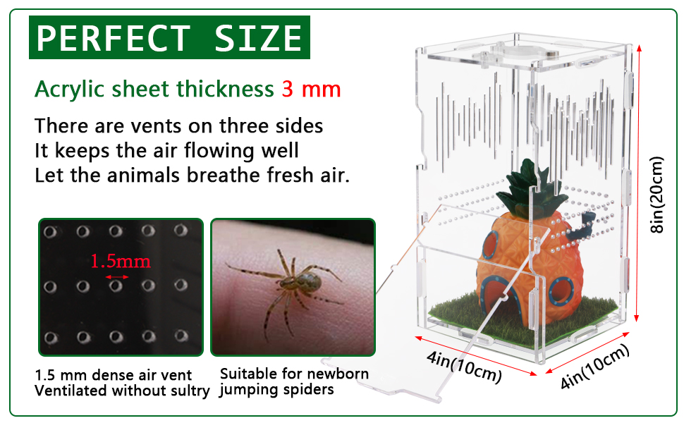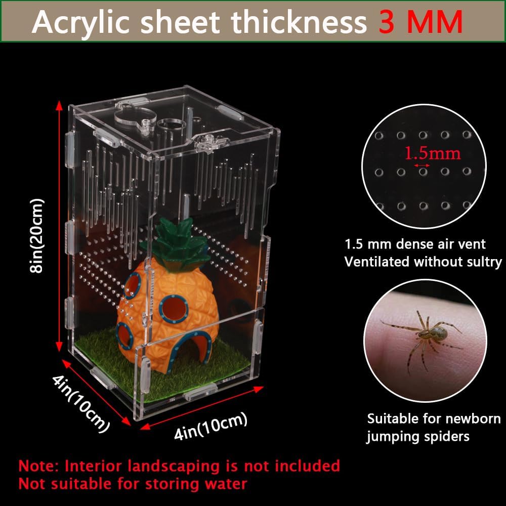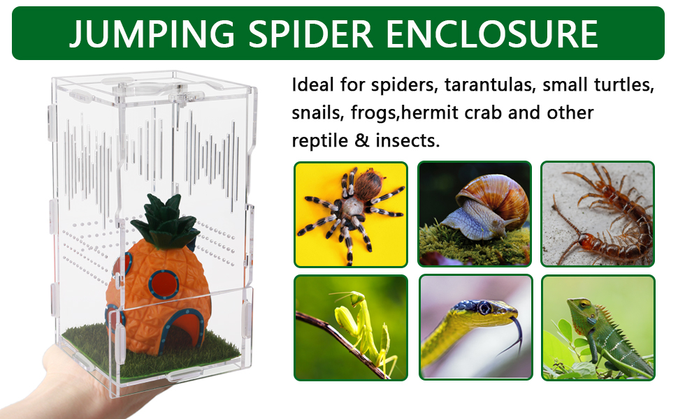 يحتوي المنتج على: حاوية عنكبوتية قافزة X1، حجم حاوية العنكبوت القافز 8 بوصة × 4 بوصة × 4 بوصة (20 × 10 × 10 سم)، يوجد دليل تعليمات لك لإكمال البساطة. (لا يتضمن هذا المنتج ملحقات الزواحف الموجودة في الصندوق)