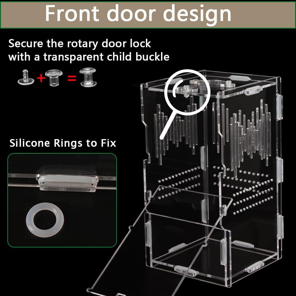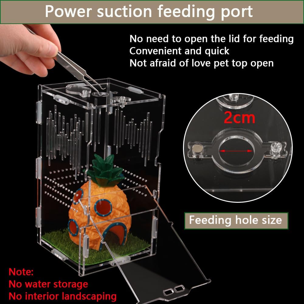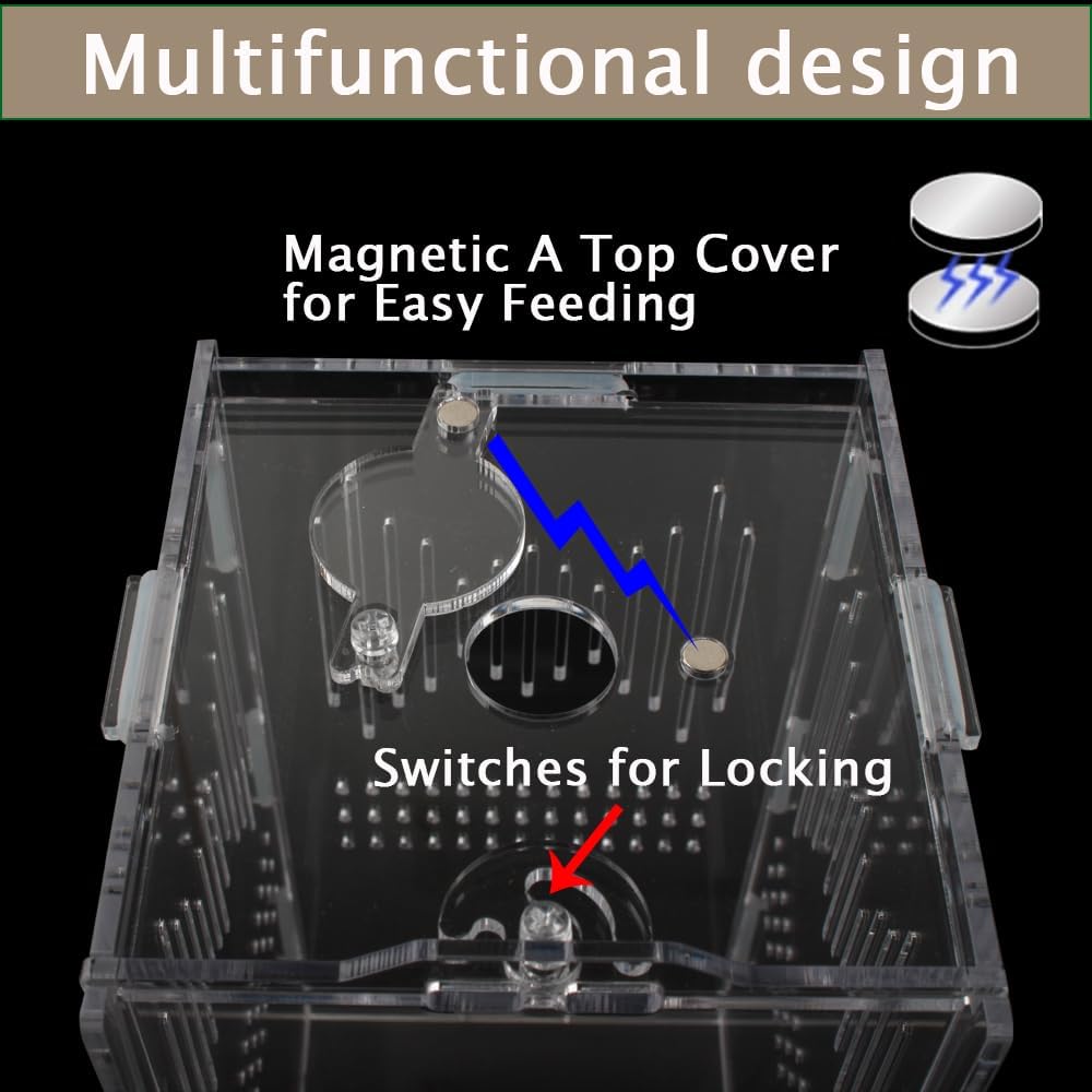 رؤية واضحة: حوض الزواحف مصنوع من الأكريليك عالي الجودة وله تصميم شفاف يضمن رؤية 360 درجة ويزيد من تجربة المشاهدة للحيوانات الأليفة. تم تجهيز قفص الزواحف الأكريليكي بفتحات تهوية متعددة لمساعدته على الحصول على دوران هواء كافٍ بالداخل
