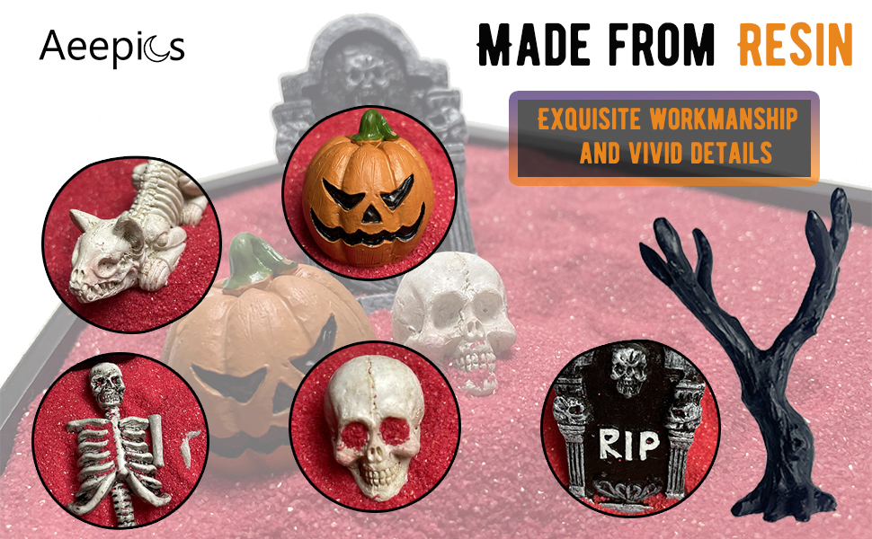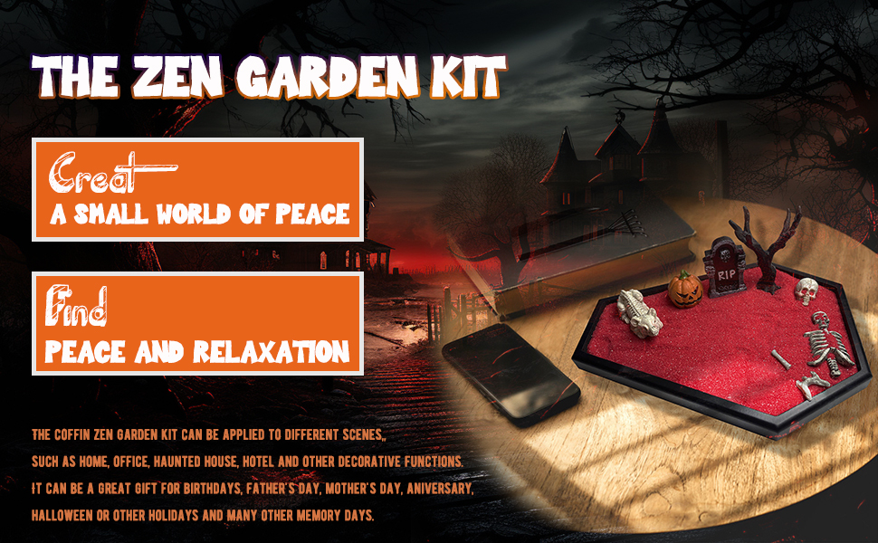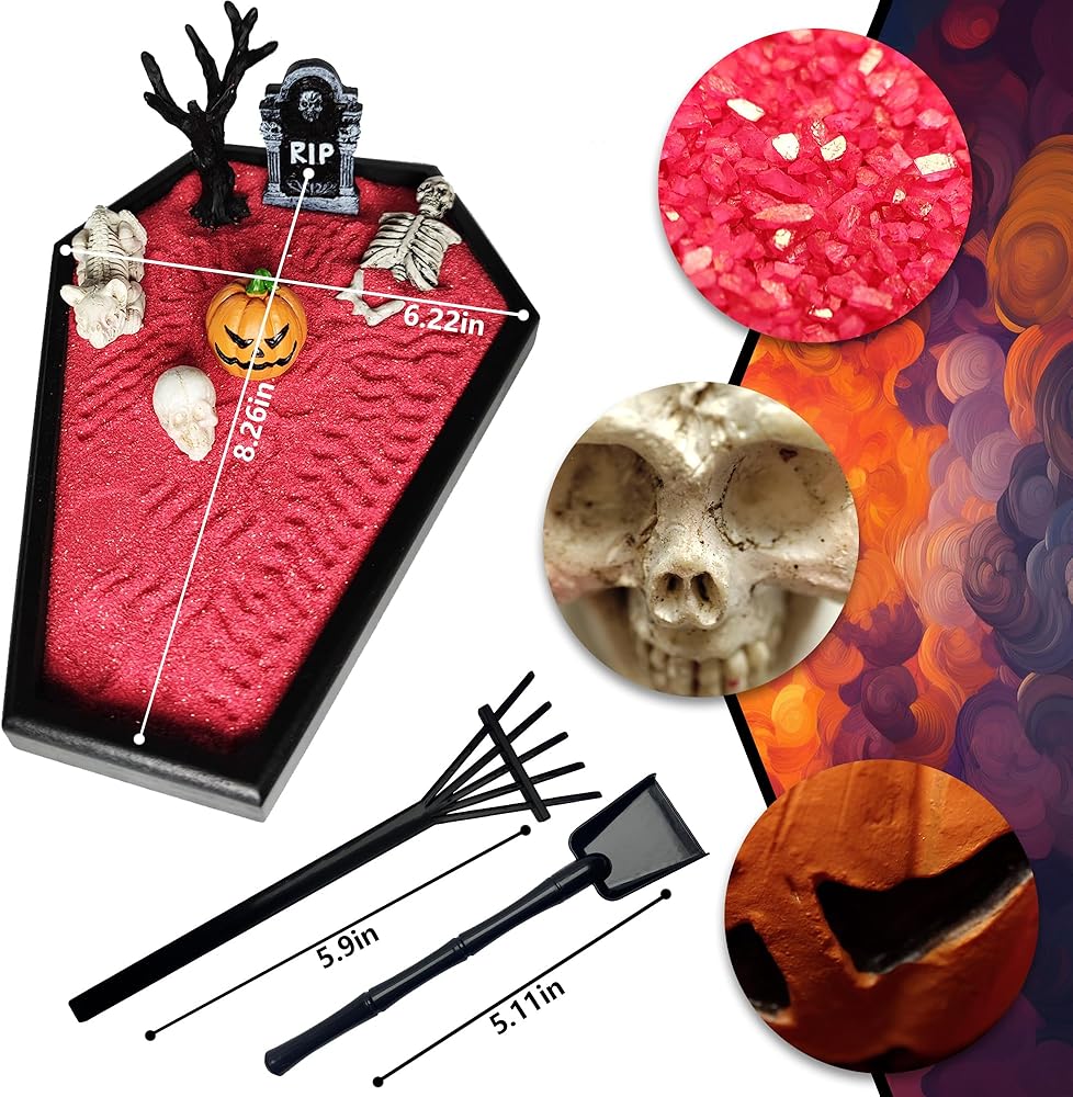 2. لا تعمل حديقة التابوت Zen Mini هذه كديكور فحسب، بل تسمح لك أيضًا بالاسترخاء تحت الضغط. يمكن أن تساعدك حديقة Halloween Zen على تحرير نفسك من الانشغال، حيث أن جرف الرمال الناعمة ووضع الهياكل العظمية المختلفة سيجعلك تشعر بالاسترخاء.