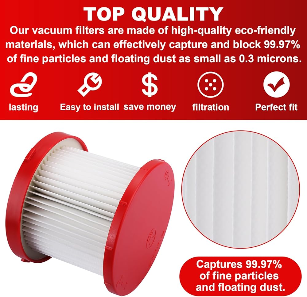 Vacuum Filter 49-90-1900 For Milwaukee, Compatible With Milwaukee Cordless M18 Vacuum 0780-20 0880-20