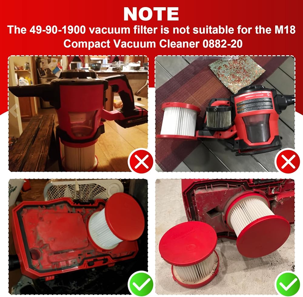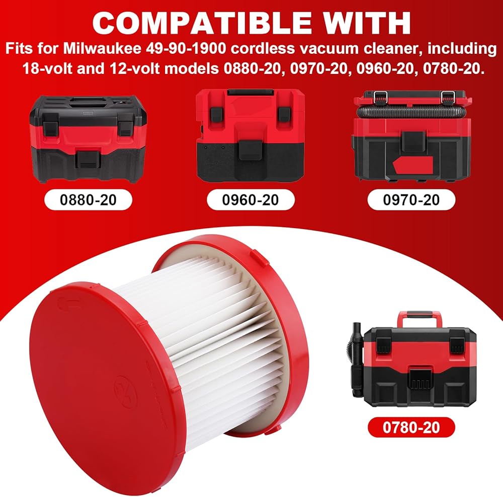 For Milwaukee Vacuum Filter Replacement 49-90-1900: Compatible with Milwaukee Cordless Wet Dry Vacuums, Include the 18 Volt and 12 Volt Models 0880-20, 0970-20, 0960-20, 0780-20.