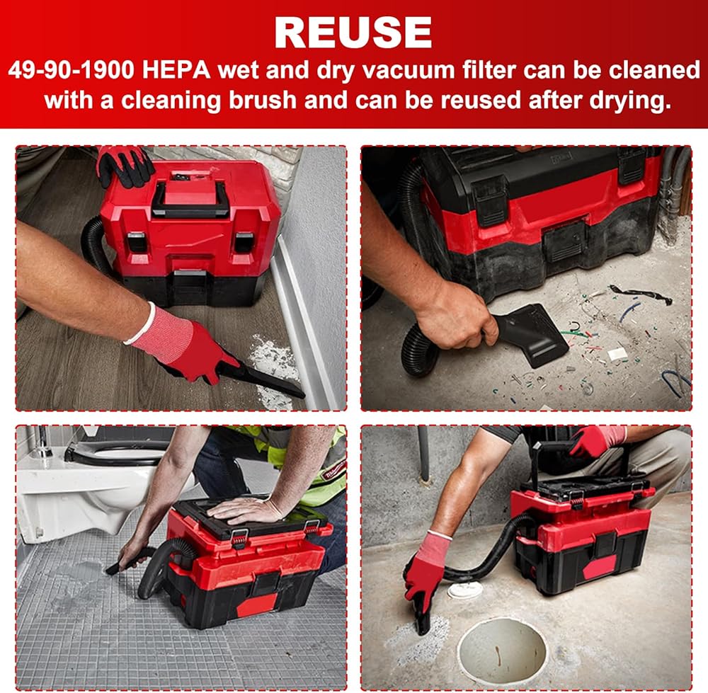 Vacuum HEPA Filter Can be Reused: The 49-90-1900 for milwaukee filter can be cleaned and reused after drying or air drying.