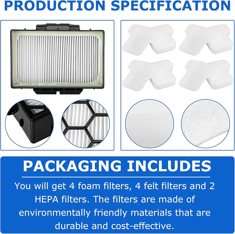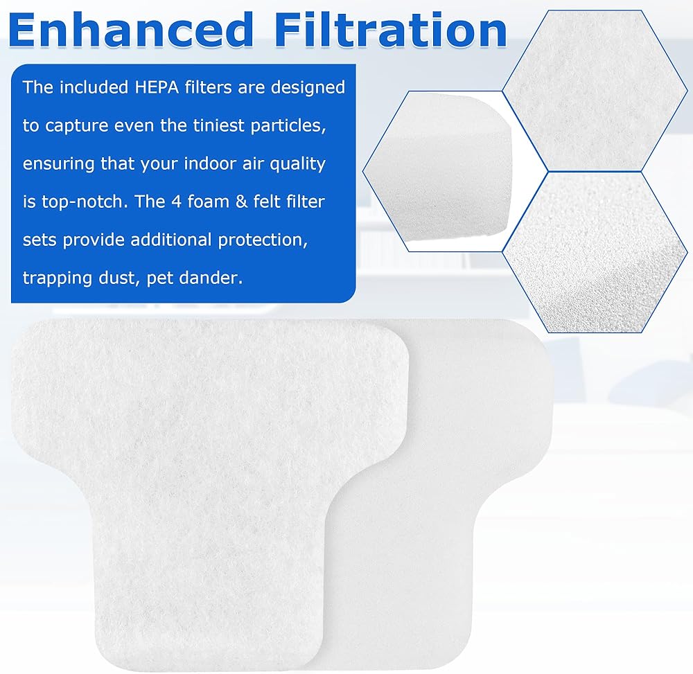 • 【PACKAGING INCLUDES】Our products have 2 foam filters, 2 felt filters and 2 HEPA filters. The filters are made of environmentally friendly materials that are durable and cost-effective.