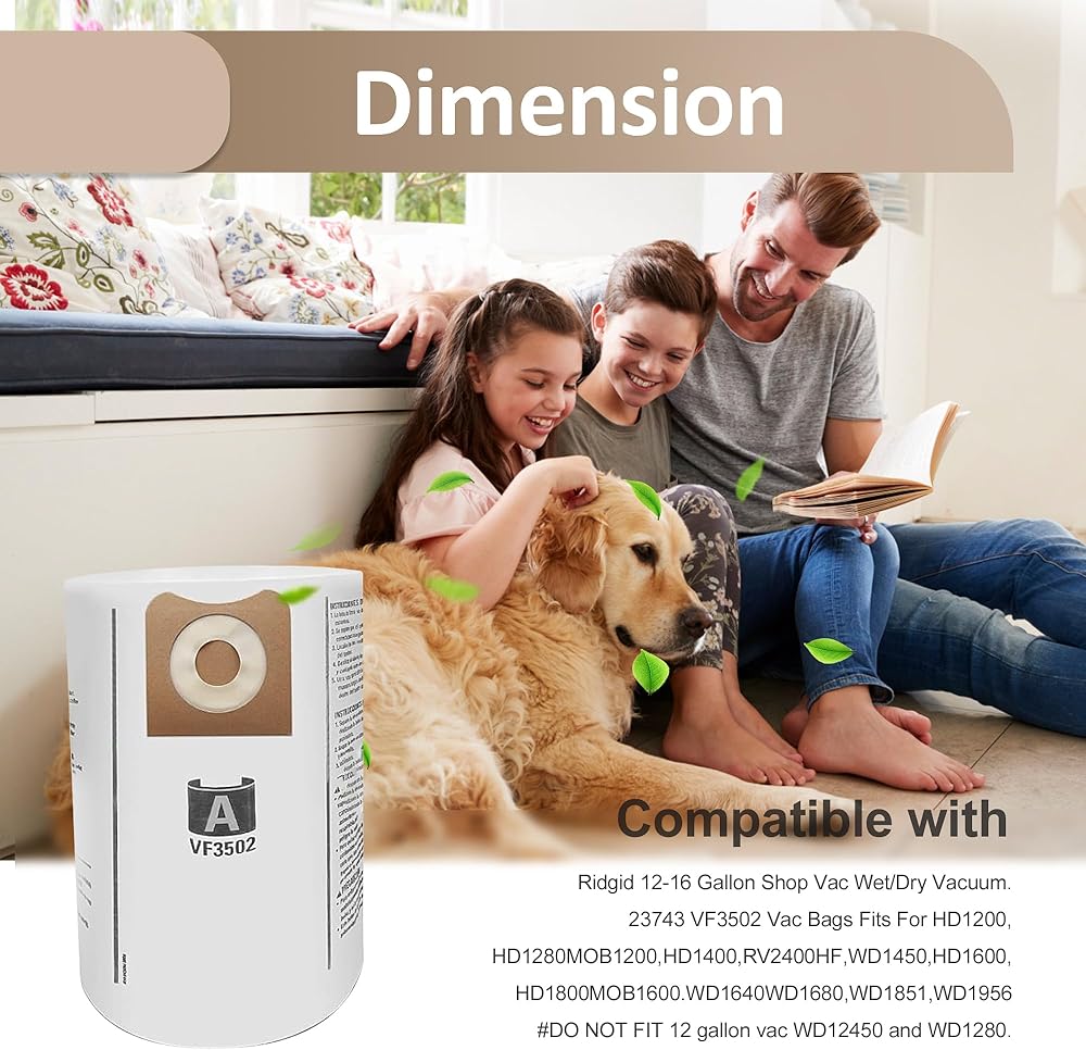 3502 replacement vacuum bags compatible with Wet/Dry Vacuum 12 Gallon, 16 Gallon.