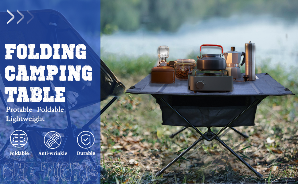 1、متينة وقوية: طاولة التخييم مصنوعة من سبائك الألومنيوم 7075 وسطح طاولة من قماش البوليستر 600D القابل للفصل.