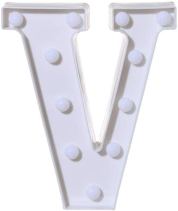 Amzure LED سرادق أضواء الحروف علامة V 26 الأبجدية تضيء رسائل علامة لضوء الليل حفل زفاف عيد ميلاد بطارية تعمل بالطاقة مصباح عيد الميلاد شريط المنزل الديكور (V)