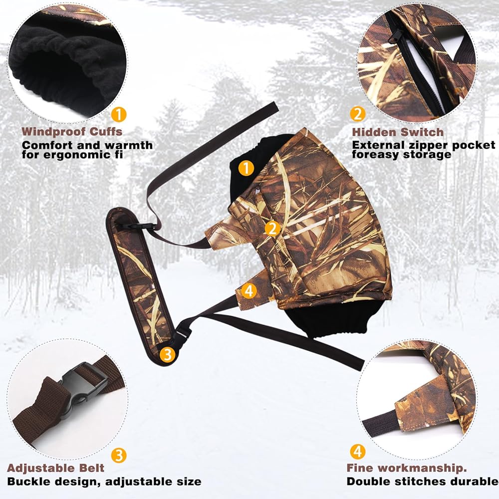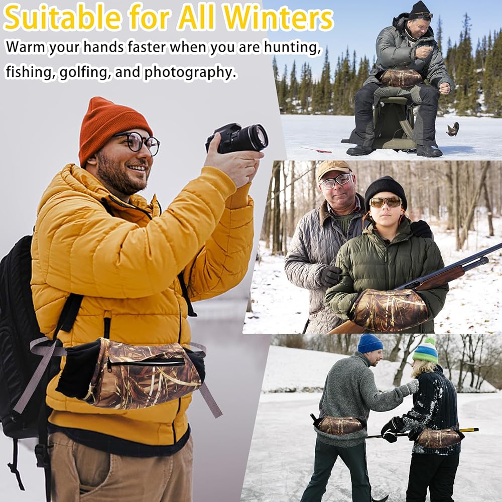 Widely Use: The camping hand warmers is a must-have for all outdoor activities, it ensures that your hands stay warm and comfortable in the cold winter. This hand muff is the ideal gift for Christmas and New Year, perfect for outdoor enthusiasts who enjoy hunting, hiking, shooting, camping and ice fishing.