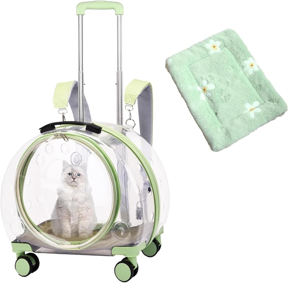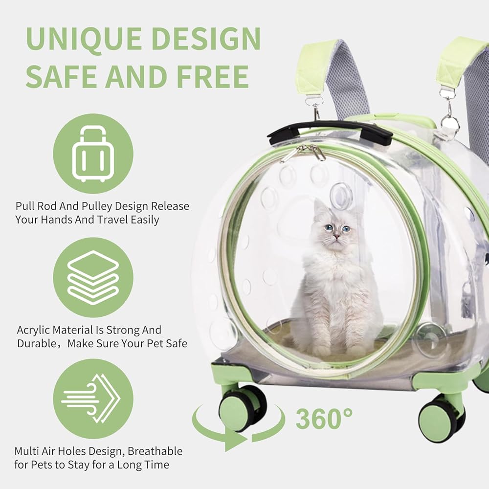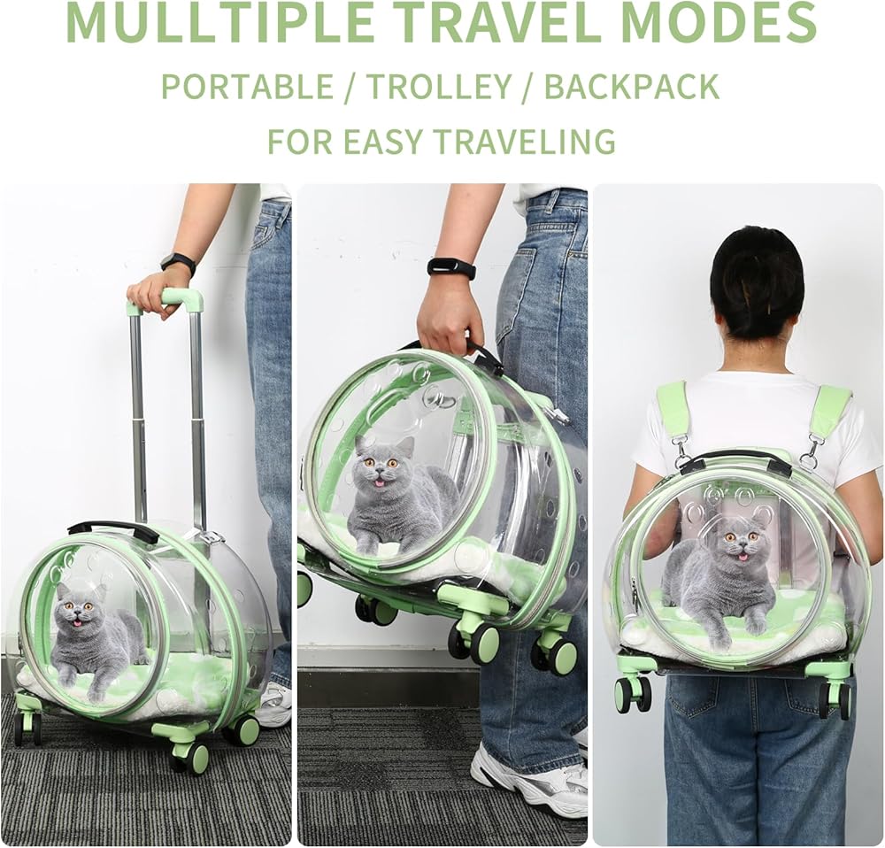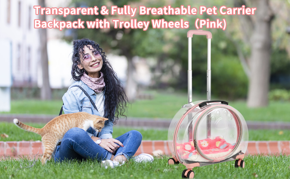 حقيبة ظهر شفافة وجيدة التهوية بالكامل لحمل الحيوانات الأليفة مزودة بعجلات