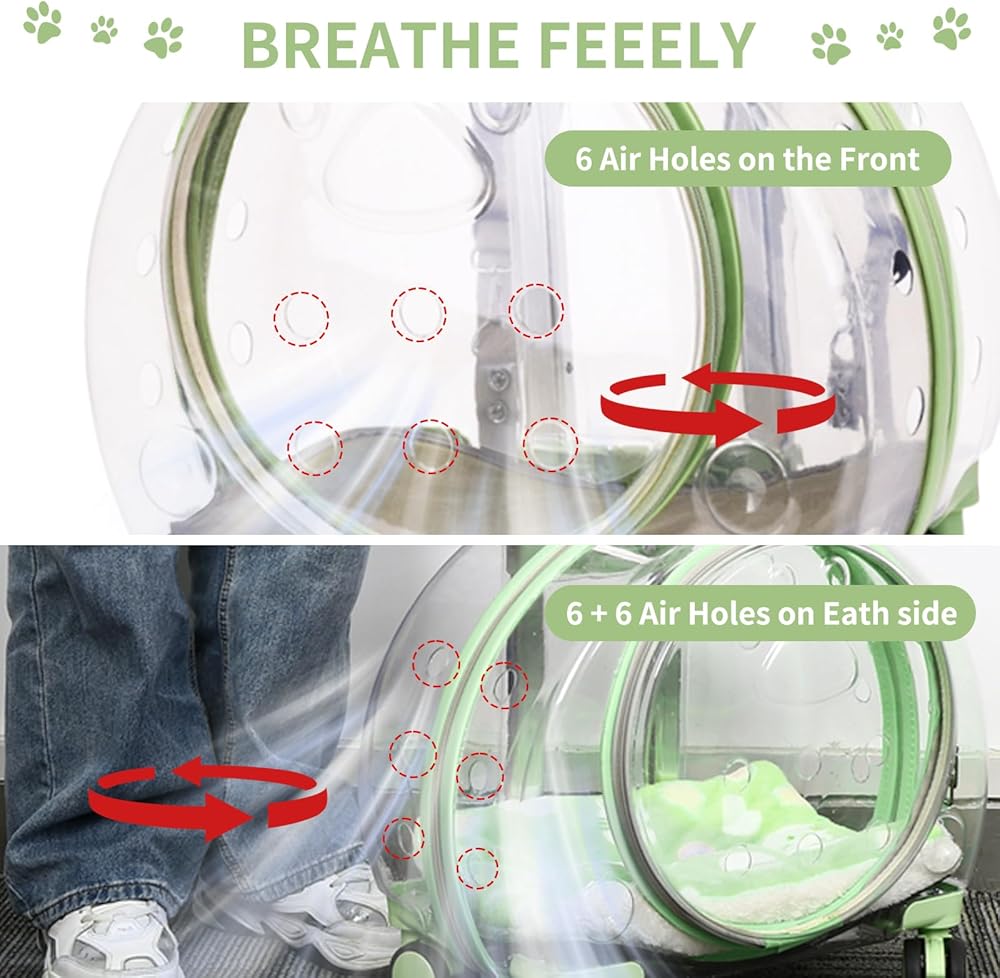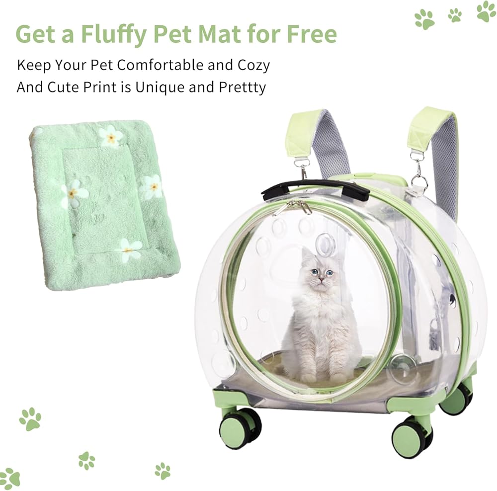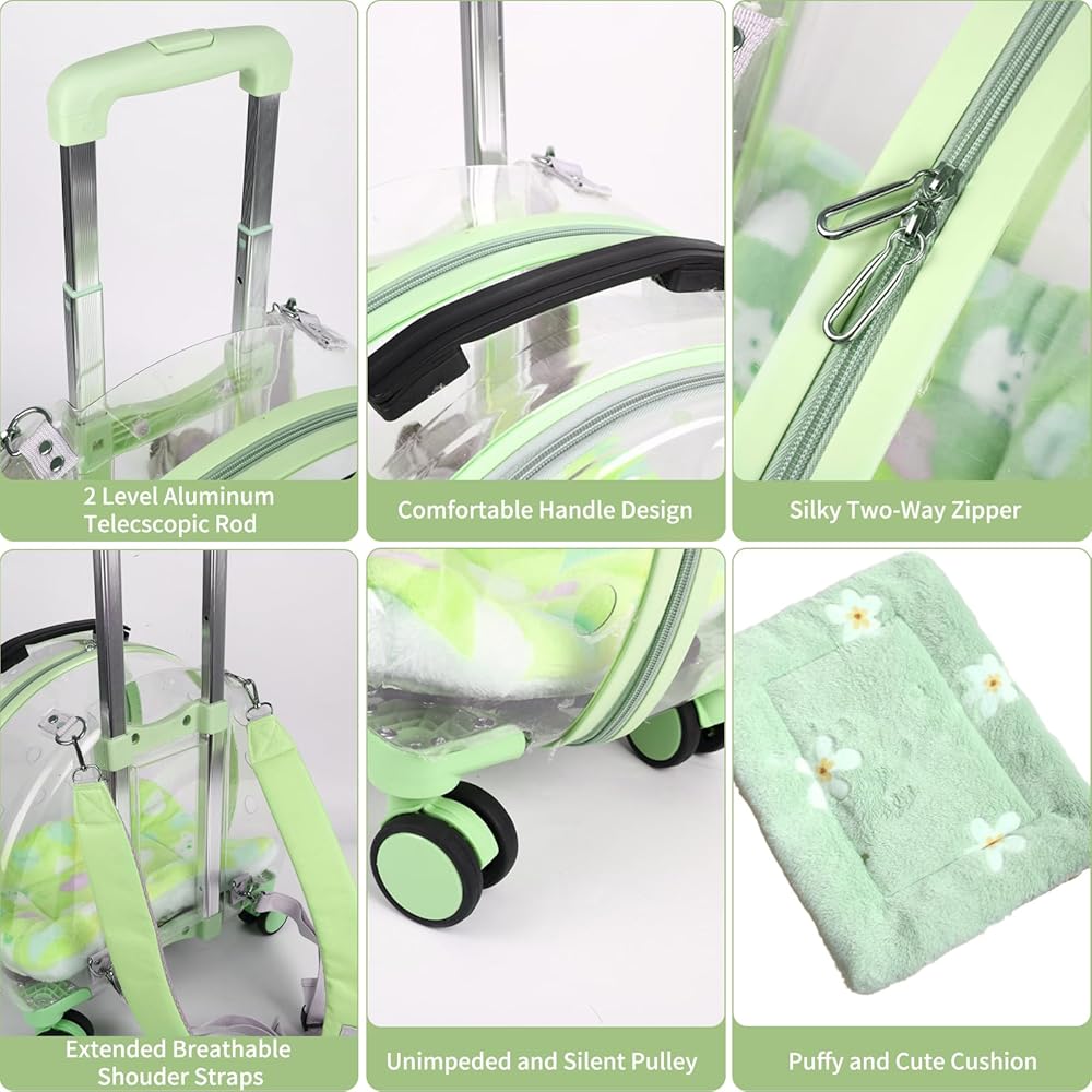 حقيبة ظهر شفافة وجيدة التهوية بالكامل لحمل الحيوانات الأليفة مزودة بعجلات