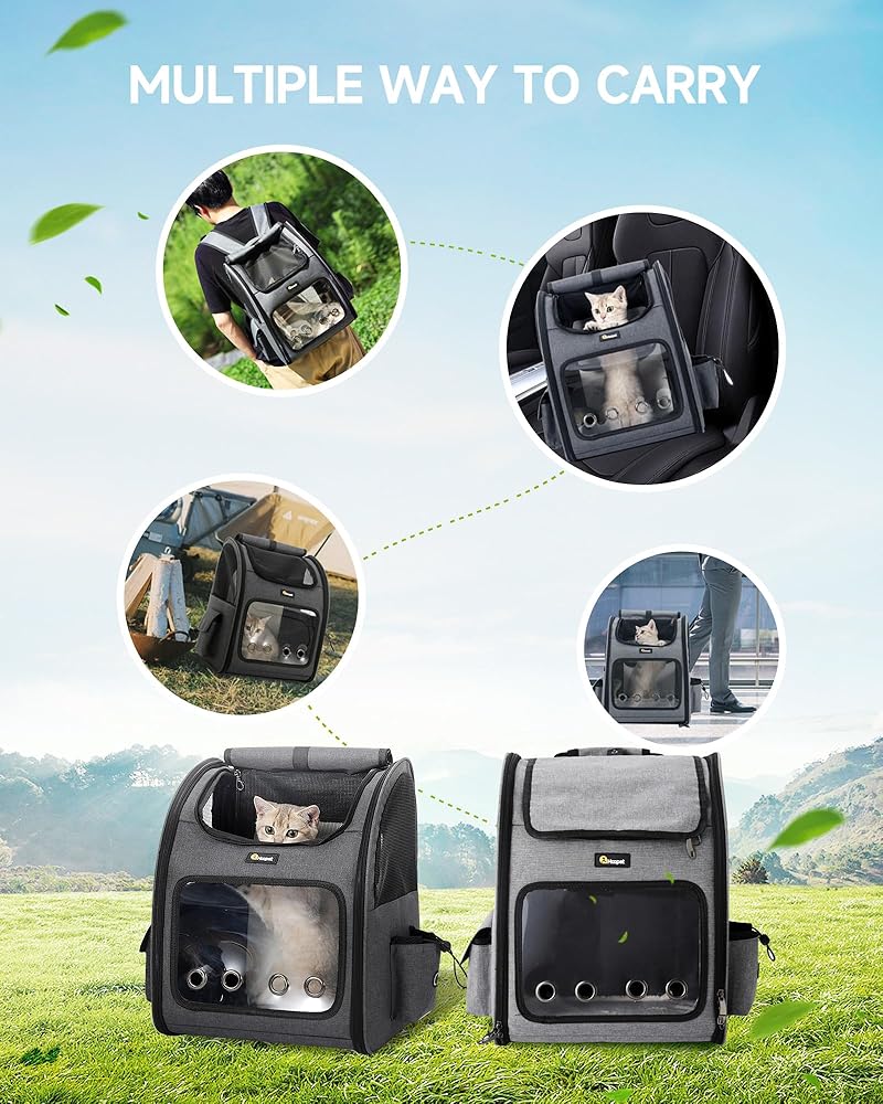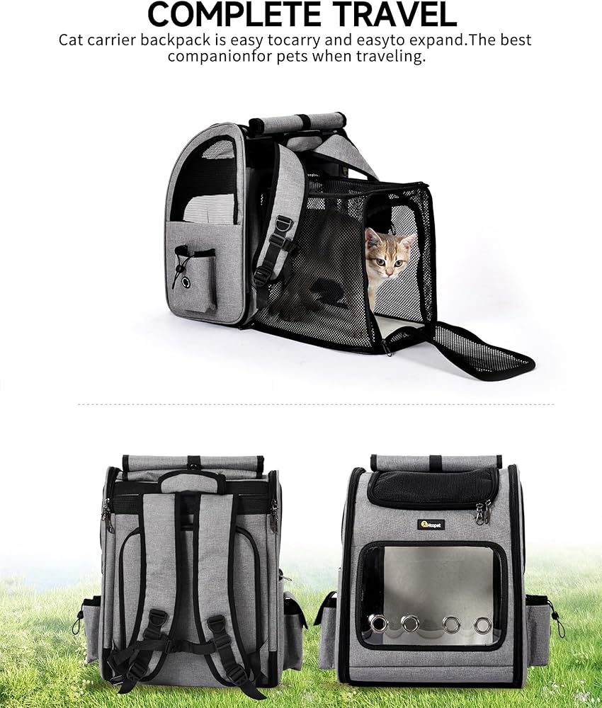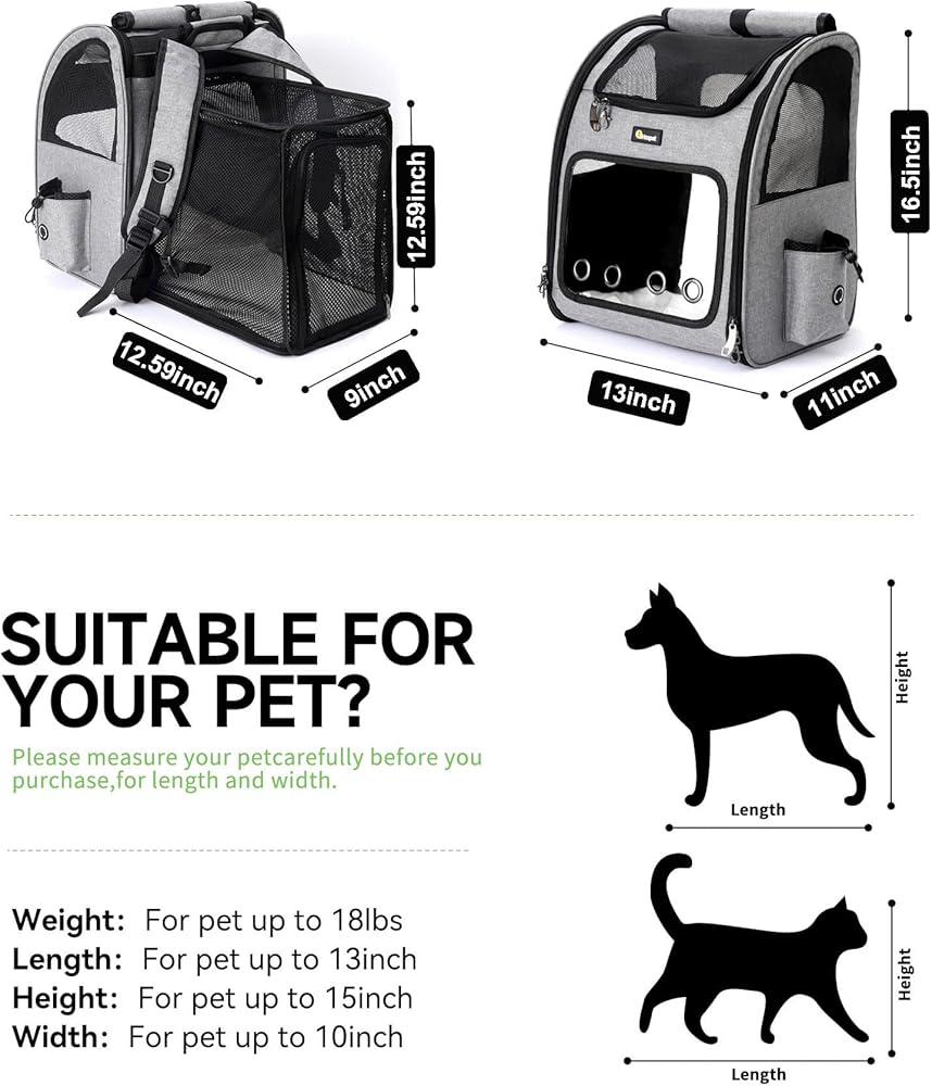 😻قابلة للحمل وقابلة للتوسيع: حقيبة الظهر لحمل الحيوانات الأليفة الخاصة بنا ذات الظهر القابل للتوسيع تسمح لطفلك الصغير بالتحرك بشكل أكثر راحة وتقلل من القلق. عند عدم الاستخدام، يمكن طيها للتخزين لتوفير المساحة. حقيبة الظهر للحيوانات الأليفة هذه واسعة وستناسبك. معظم القطط والكلاب الصغيرة ومعظم الحيوانات الأليفة الصغيرة والمتوسطة الحجم!