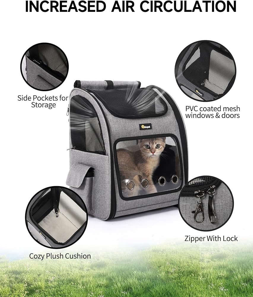😻مريح ومسامي: تتميز حقيبة ظهر القطط بقاعدة ثابتة قابلة للإزالة يمكن فكها وتتميز ببطانة ناعمة ومريحة لحيوانك الأليف للجلوس أو النوم بشكل مريح. الهيكل بأكمله مصنوع من مادة شبكية مسامية لضمان التهوية والدورة الدموية المناسبتين. الهواء.