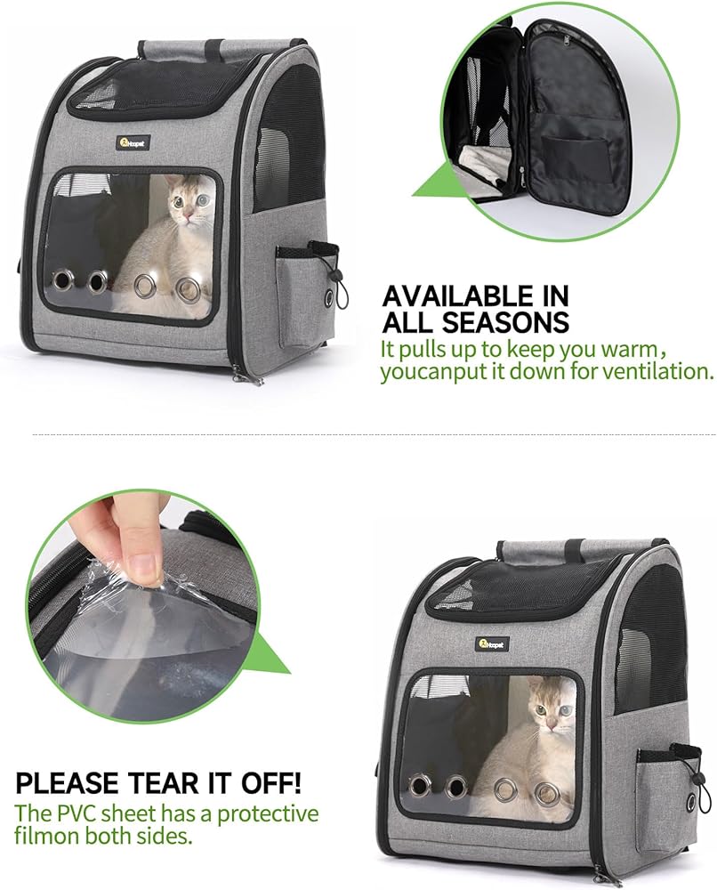 😻متوفرة في جميع المواسم: متوفرة في جميع المواسم: يمكن فتح الجزء العلوي من حقيبة ظهر القطط، حتى يتمكن حيوانك الأليف من إخراج رأسه، ويمكنك تثبيت غطاء الظل للحماية من الشمس. الجوانب مصنوعة داخليًا من مادة سدادة رياح تسحب لأعلى لتبقيك دافئًا أو مفتوحة للتهوية، مناسبة لعدة مواسم.