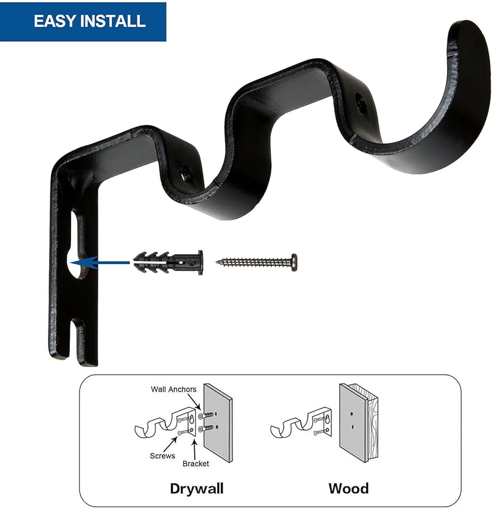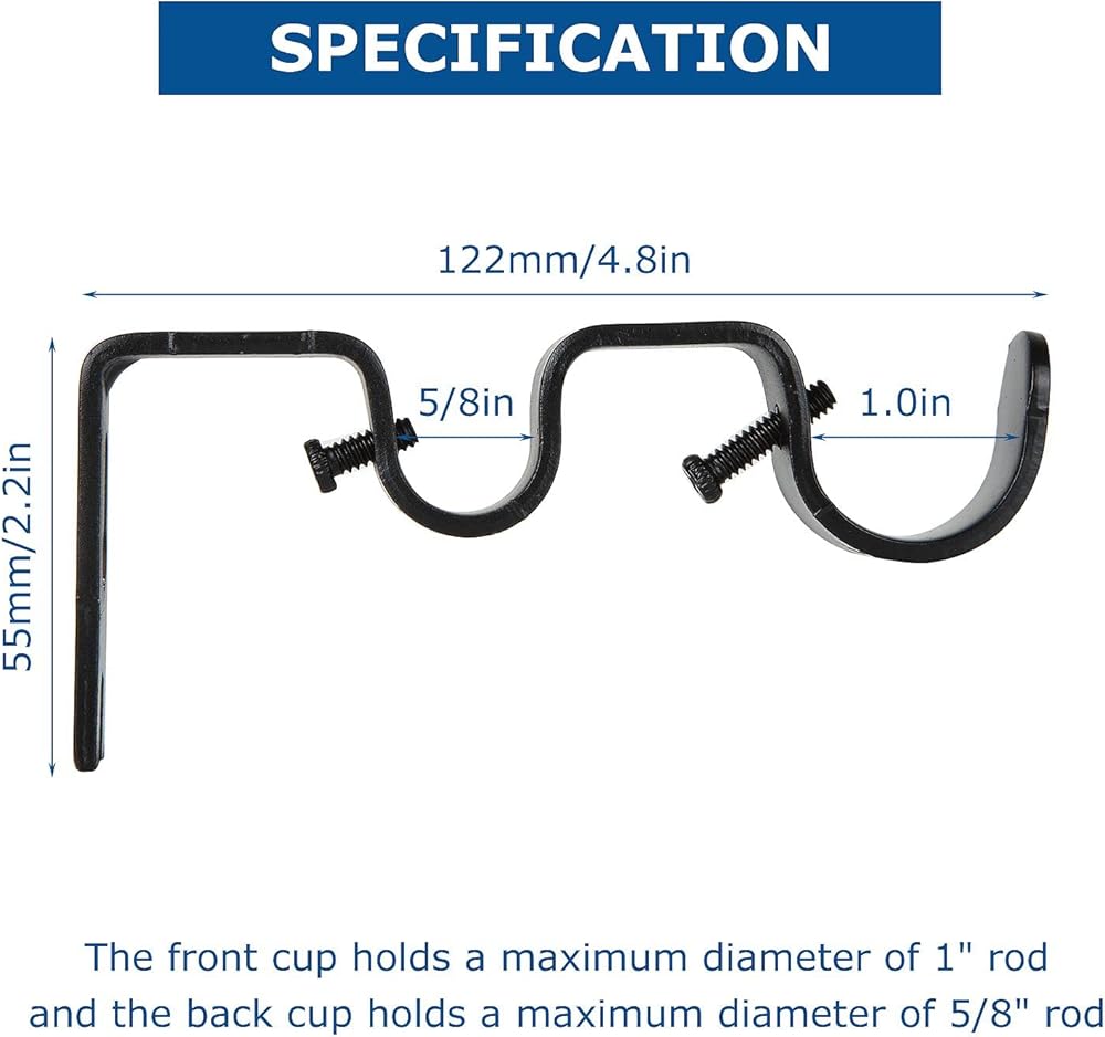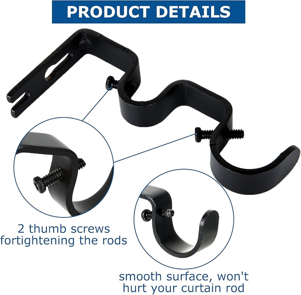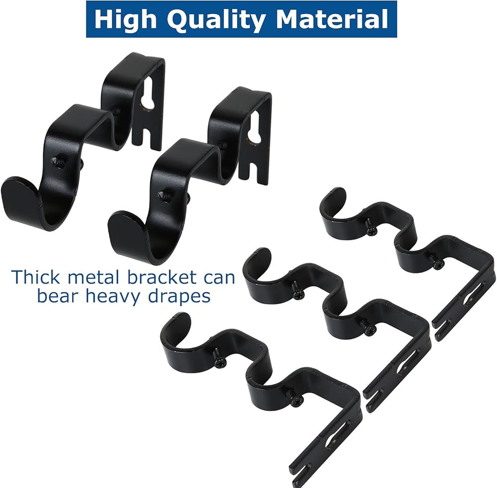 • 【جودة موثوقة】دعامات قضيب الستارة مصنوعة من مادة حديد الصب السميكة عالية الجودة، صلابة قوية، رشها بطلاء أسود أنيق على الأجزاء المكشوفة لمنع الصدأ.