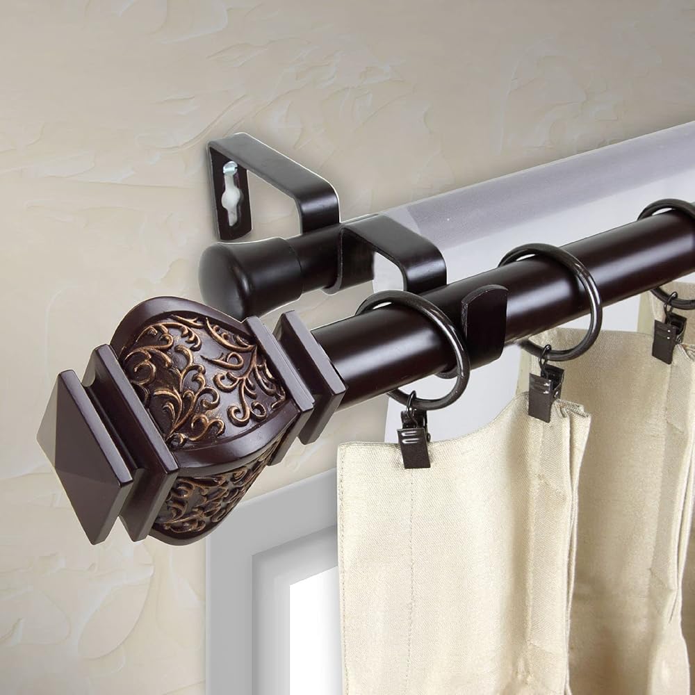 ستخرج دعامات قضيب الستارة المزدوجة الخاصة بنا من الجدار 4 3/4 بوصة، ومناسبة لقضيب الستارة 1 بوصة و5/8 بوصة.