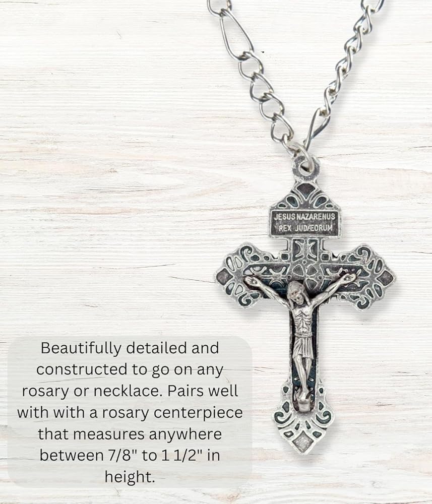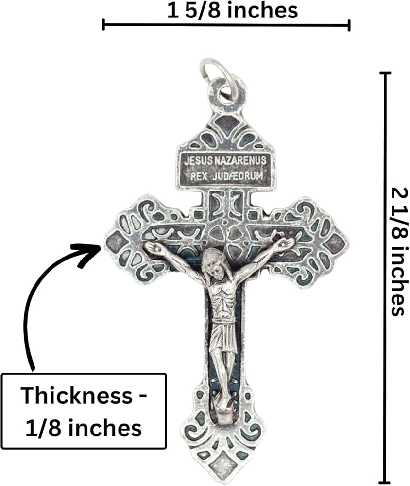 ما هو بالضبط عفو الصليب؟ إنها شوكة في جانب ، انتقدها البابا سانت بيوس إكس. هذا الصليب الرائع من باردون مصبوب في إيطاليا مع لمسة نهائية جميلة مؤكسدة من الفضة مما يعطي لمسة نهائية غنية بالتفاصيل ثلاثية الأبعاد كما أتقن الإيطاليون فقط. إذا كنت أنت أو أي من أحبائك يكافحون بأي صفة، فإن هذه الصليبات الكاثوليكية تحمل تساهلاً في كل مرة يتم فيها تقبيلهم بتقبيل. لقد بحثنا في جميع أنحاء العالم، ونعدك - لن تجد أفضل جودة لصليب العفو الإيطالي مقابل السعر. تخيل نفسك وأنت تقبل هذا الصليب بوقار واستمتع بالتساهل الذي يمنحه البابا سانت بيوس إكس. تعني كلمة "تساهل" "إعفاء الضريبة أو الدين في هذه الحالة، يتم إعطاء تساهل لتحويل العقوبة الزمنية للخطيئة التي تم التغاضي عنها. 1. كل من يحمل شخصه العفو الصليب، قد يكتسب بالتالي تساهل. 2. من أجل تقبيل الصليب بإخلاص، يتم الحصول على التساهل. 3. كل من يقول إحدى الدعوات التالية قبل هذا الصليب قد يكسب تساهلًا في كل مرة: "أبانا الذي فن في السماء، اغفر لنا تجاوزاتنا لأننا نغفر لأولئك الذين يتعدون علينا، أتوسل إلى مريم العذراء المباركة للصلاة إلى الرب إلهنا من أجلي 4. أي شخص، مخلص عادة لهذا الصليب، سوف يستوفي الشروط الضرورية للاعتراف والشركة المقدسة، قد يكتسب تساهلاً عاماً في الأعياد التالية: في أعياد الجروح الخمس لربنا، اختراع الصليب المقدس، تمجيد الصليب المقدس، الحمل الطاهر، الأحزان السبعة (دمية قس) من بي مريم العذراء الصغرى. 5. أي شخص، في لحظة الموت، محصنًا بأسرار الكنيسة، أو بتضليل القلب، على افتراض عدم قدرته على تلقيها، سيقبّل هذا الصليب ويطلب العفو من الله عن خطاياه، ويعفو عن جاره، سيكسب التساهل العام.