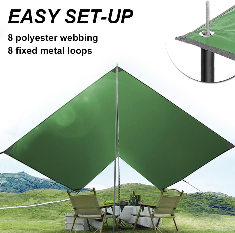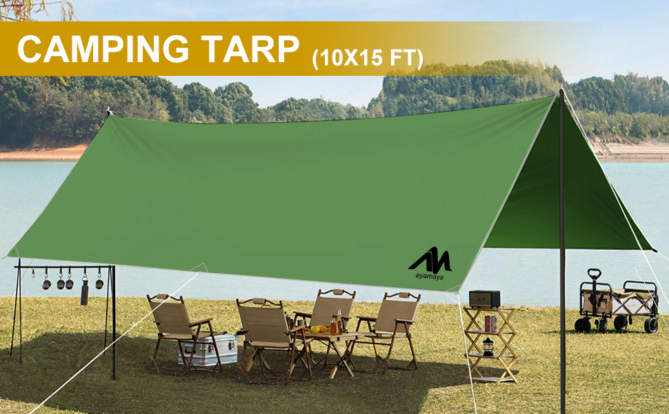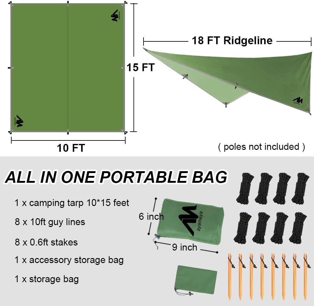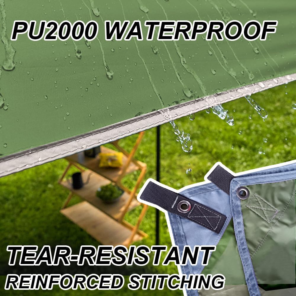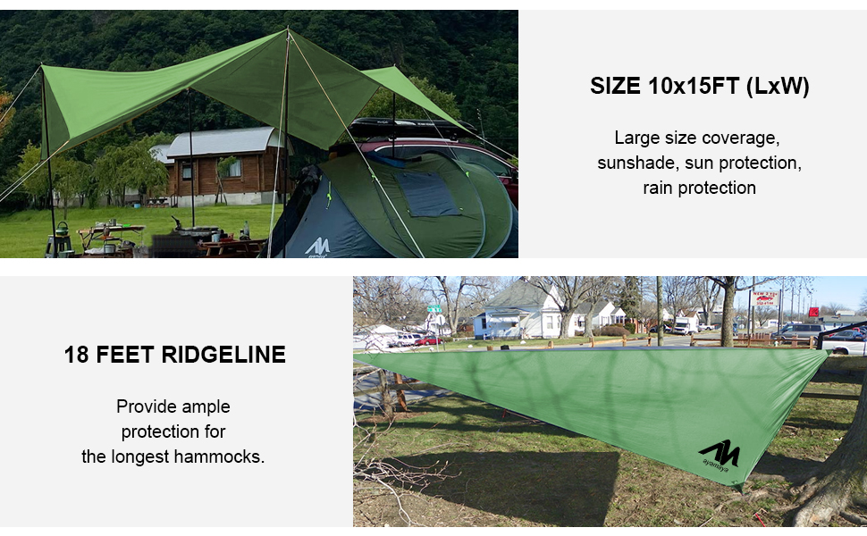 مقاس كبير: يوفر قماش التخييم الخاص بنا تغطية كبيرة الحجم 10 × 15 قدم للأراجيح أو الخيام الخاصة بك حتى 8-10 أشخاص.