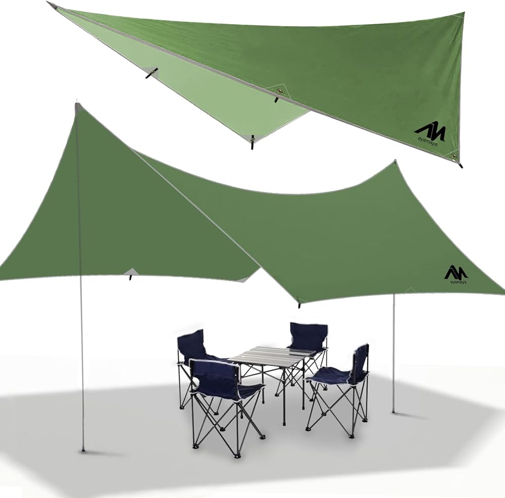 قماش القنب للتخييم من ايامايا مقاس كبير 10 × 15 قدم - مظلة مقاومة للماء مظلة المطر نزهة حصيرة مأوى للبقاء على الظهر والمشي لمسافات طويلة والسفر والأدغال والشاطئ