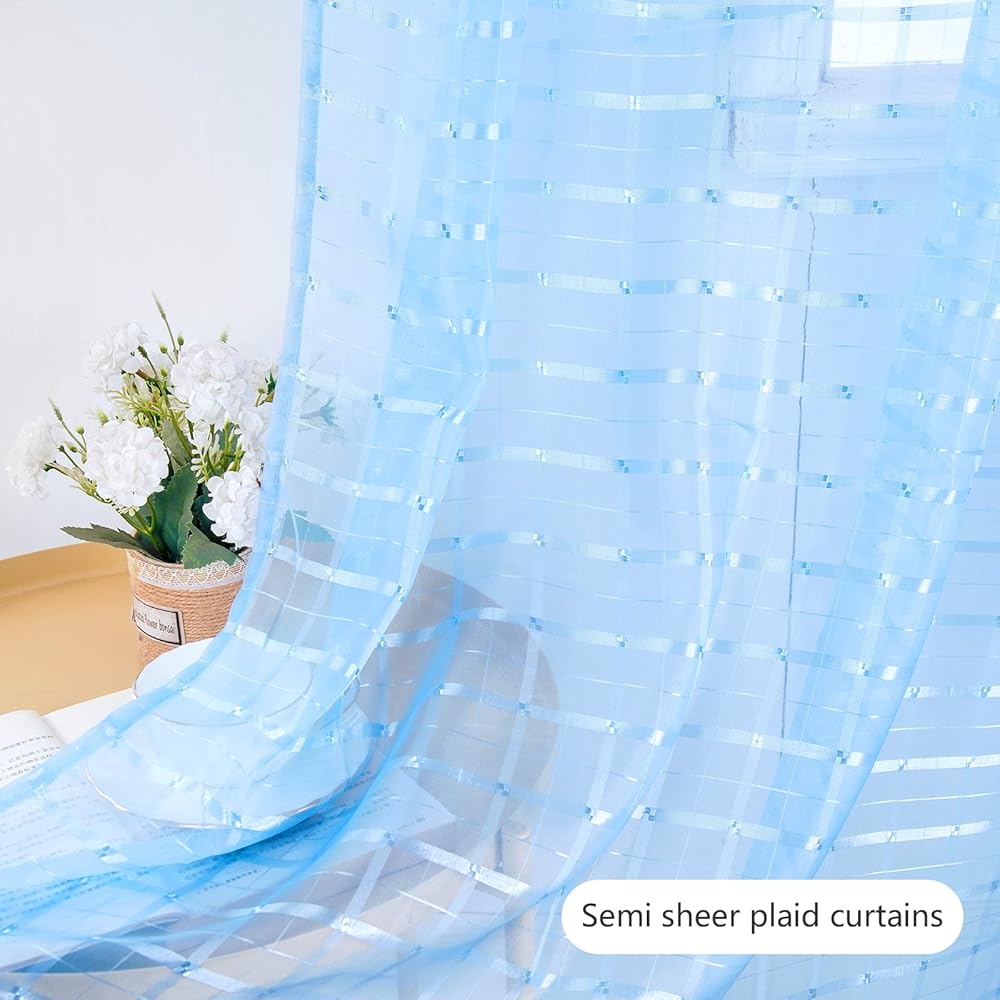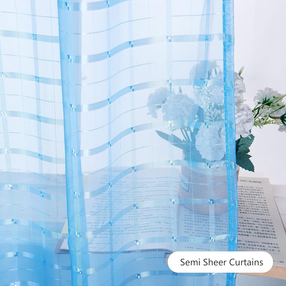 ❤️عملية وعصرية: تتميز هذه الستارة بتصميم شبه شفاف، وتصميم ذو ملمس مربعات يخلق نمطًا كلاسيكيًا، ويوفر لك مساحة خاصة أثناء ترشيح ضوء الشمس.