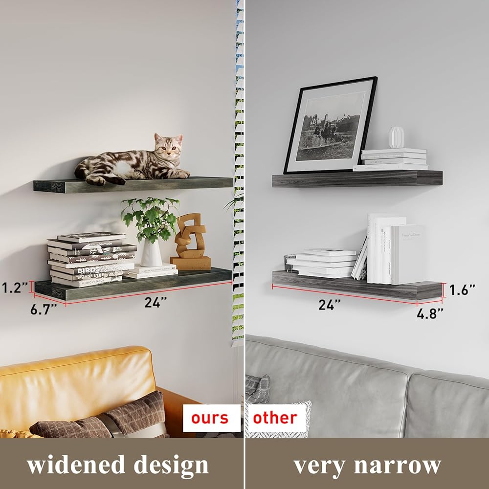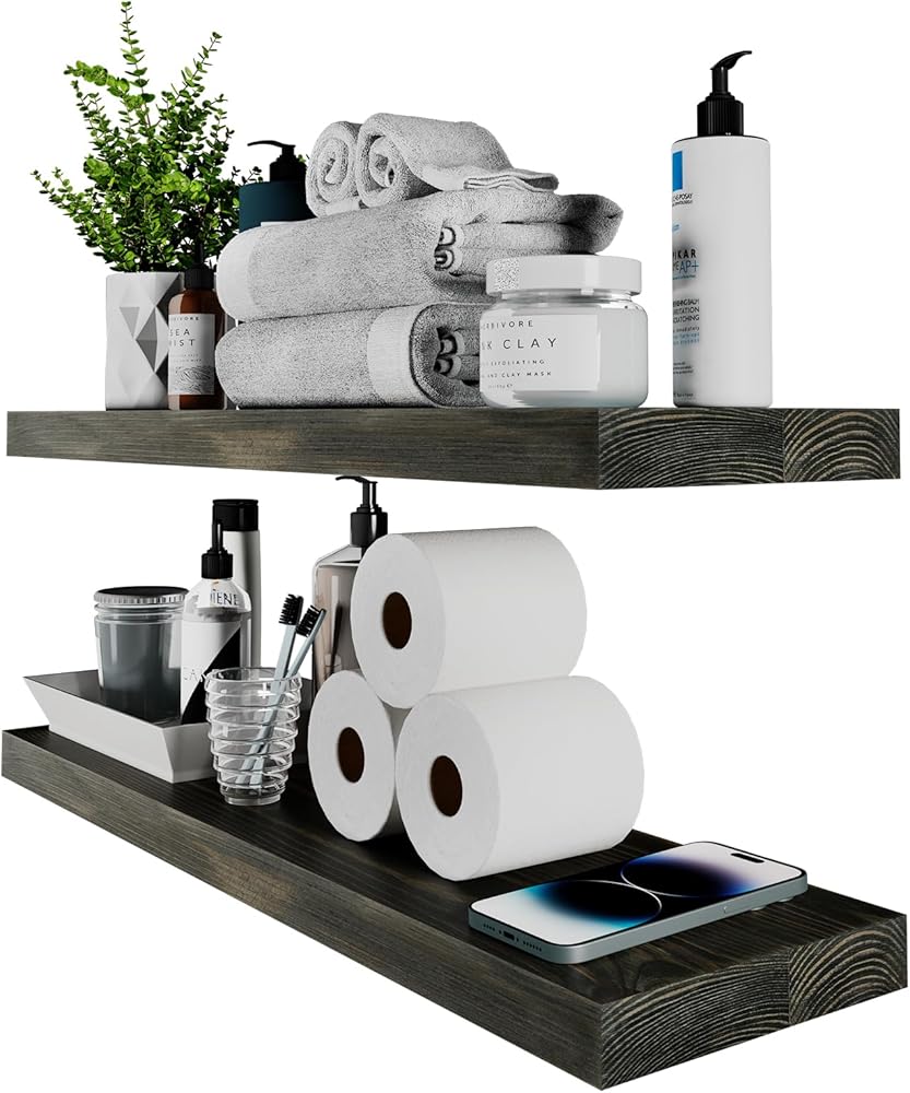 ديكور حائط متعدد الاستخدامات: يمكن لمجموعة الرف العائمة المفتوحة هذه المكونة من قطعتين أن تعزز جمال جدار حمامك، والمطبخ، وغرفة المعيشة، وغرفة النوم، والمكتب، وعرض نباتاتك، وديكور الصور، واستخدامها كرف للكتب وغير ذلك الكثير.