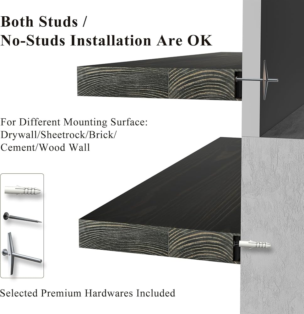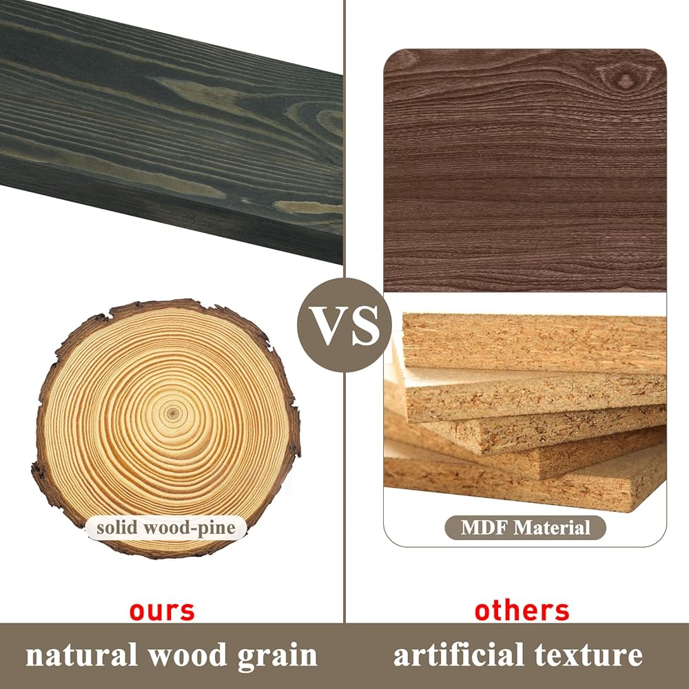 رف خشبي خفيف طبيعي: هذه الأرفف الخشبية مصنوعة من الخشب الحقيقي مع عقد وملمس طبيعي، وهي متفحمة لتعطي مظهرًا ريفيًا قديمًا، وتم اختيار مادة خشبية خفيفة الوزن خصيصًا، وهي أفضل للاستقرار على الحائط