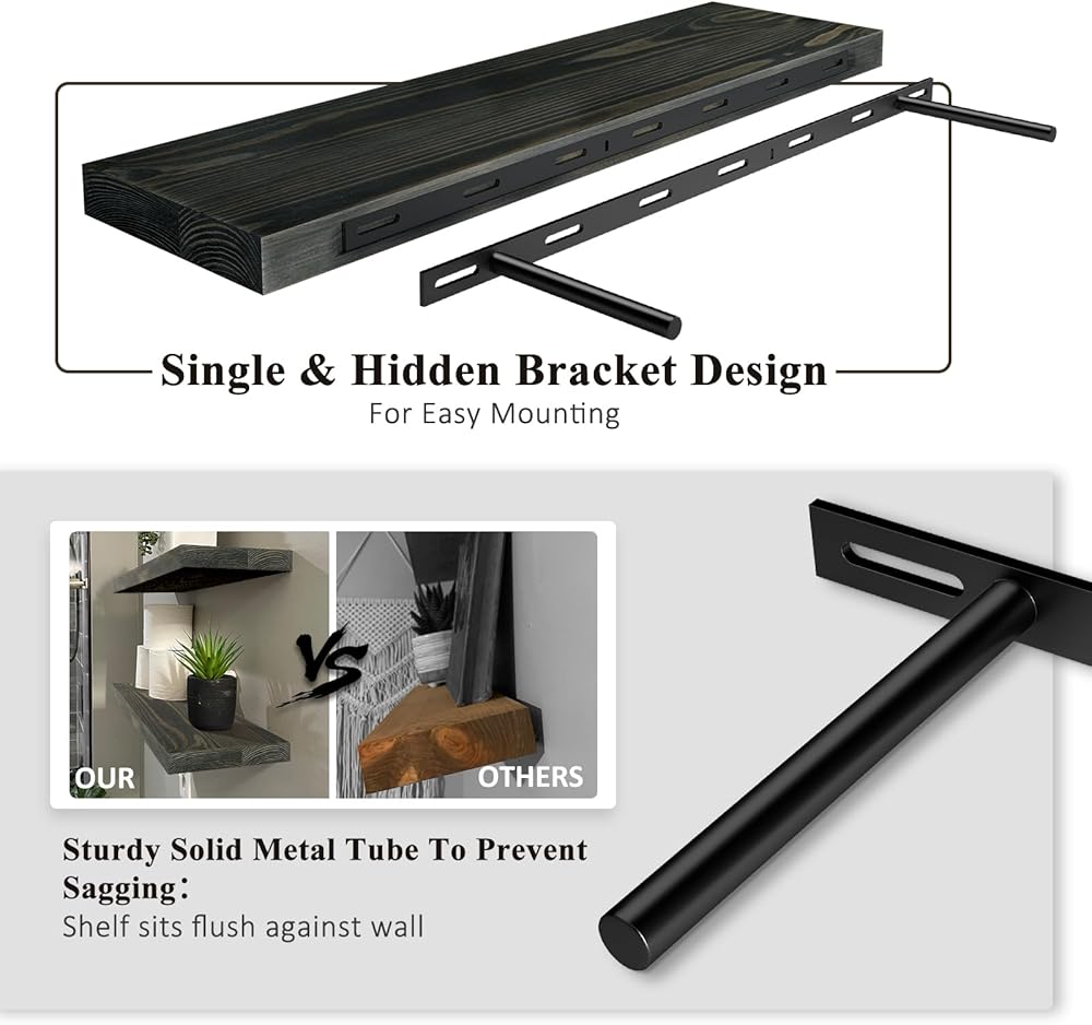 قوي وأفقي: يساعد الأنبوب المعدني الصلب للدعامة وأدوات التثبيت الجدارية المختارة على توفير دعم أفضل للرف العائم، ومنع الترهل، وسيجلس الرف الخشبي لبيت المزرعة على الحائط