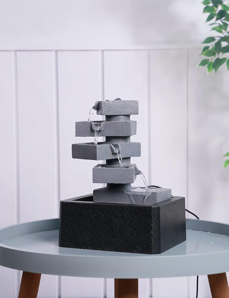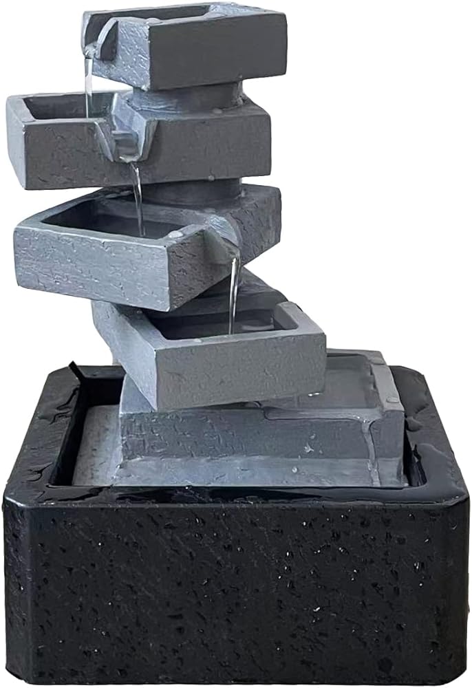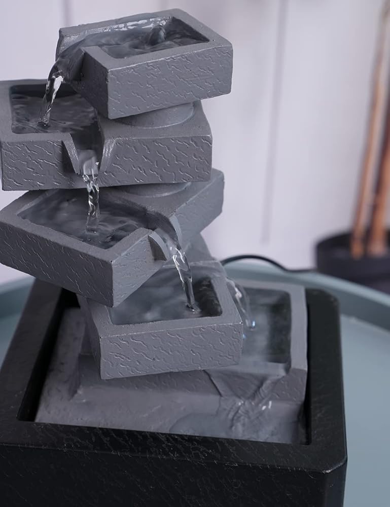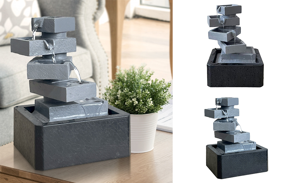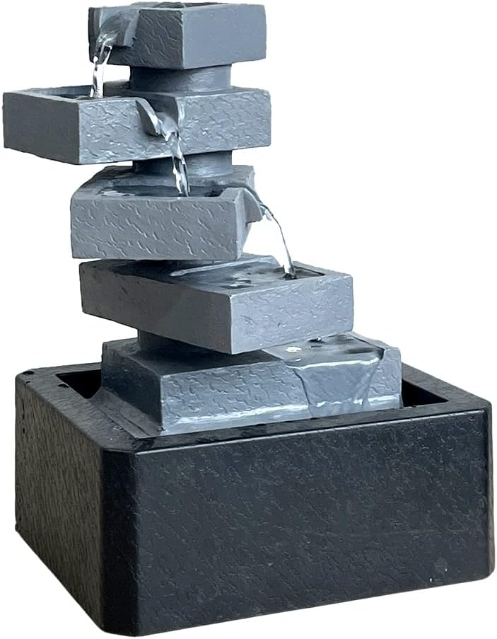 【ديكور نافورة طاولة داخلية】– تمثال أرضي مربع الشكل من 5 طبقات هو ديكور مثالي للاستخدام في الأماكن المغلقة والمفتوحة، ويتميز بمضخة داخلية تحافظ على تدفق المياه - فقط قم بتوصيله بالكهرباء!