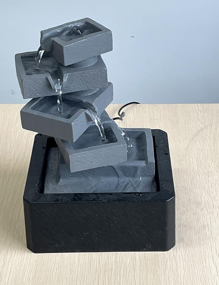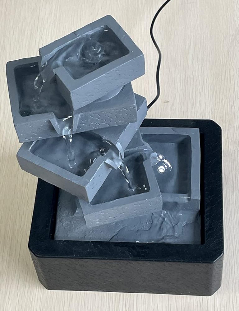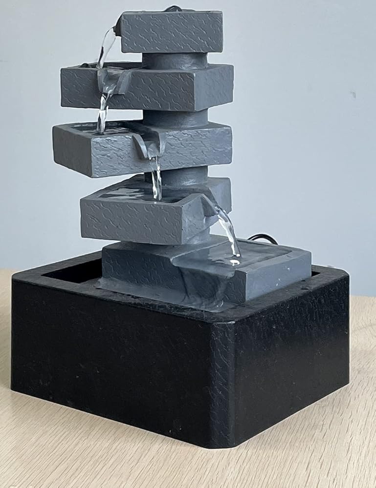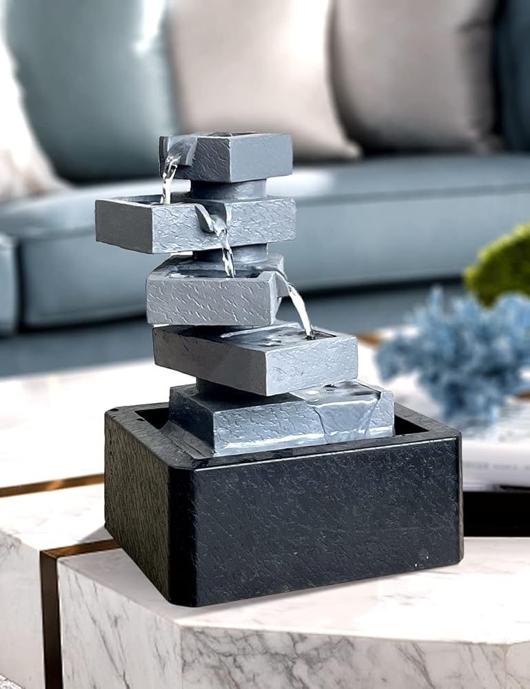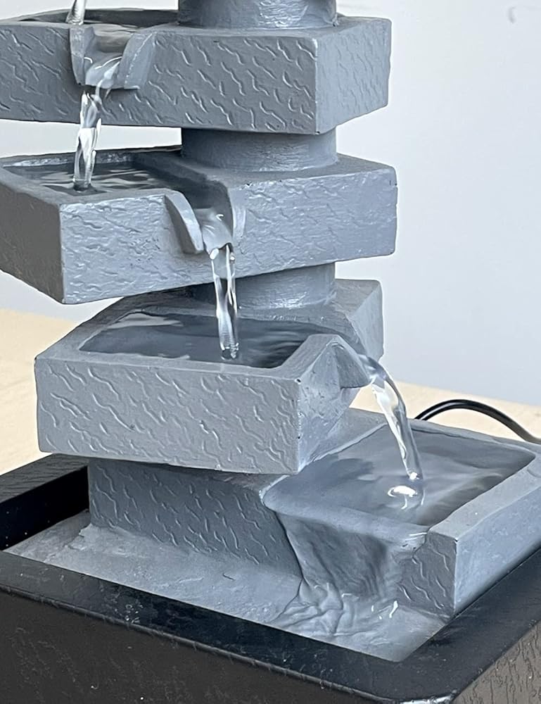 【ديكور نافورة طاولة داخلية】– تمثال أرضي مربع الشكل من 5 طبقات هو ديكور مثالي للاستخدام في الأماكن المغلقة والمفتوحة، ويتميز بمضخة داخلية تحافظ على تدفق المياه - فقط قم بتوصيله بالكهرباء!