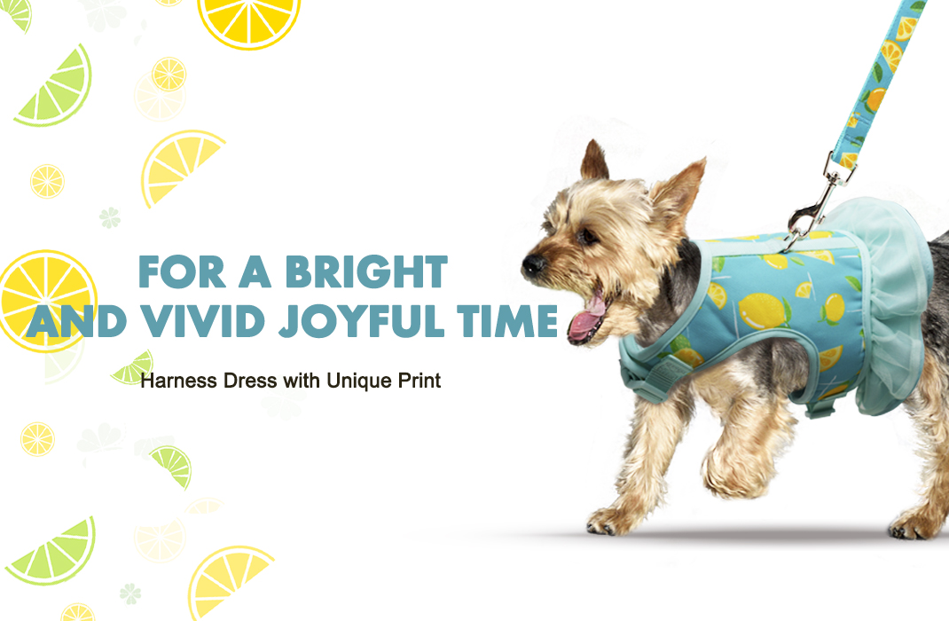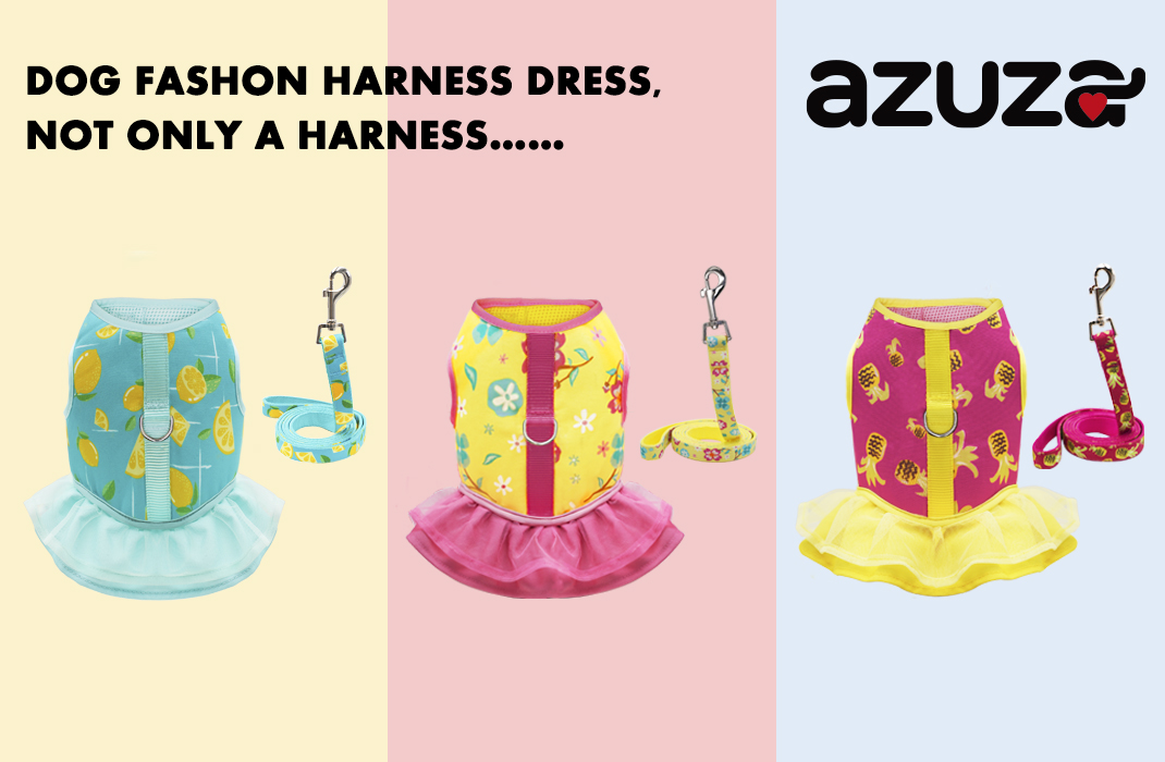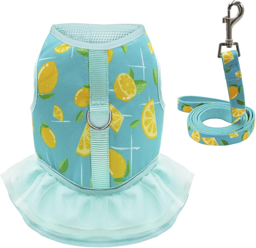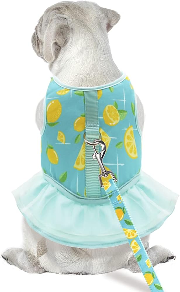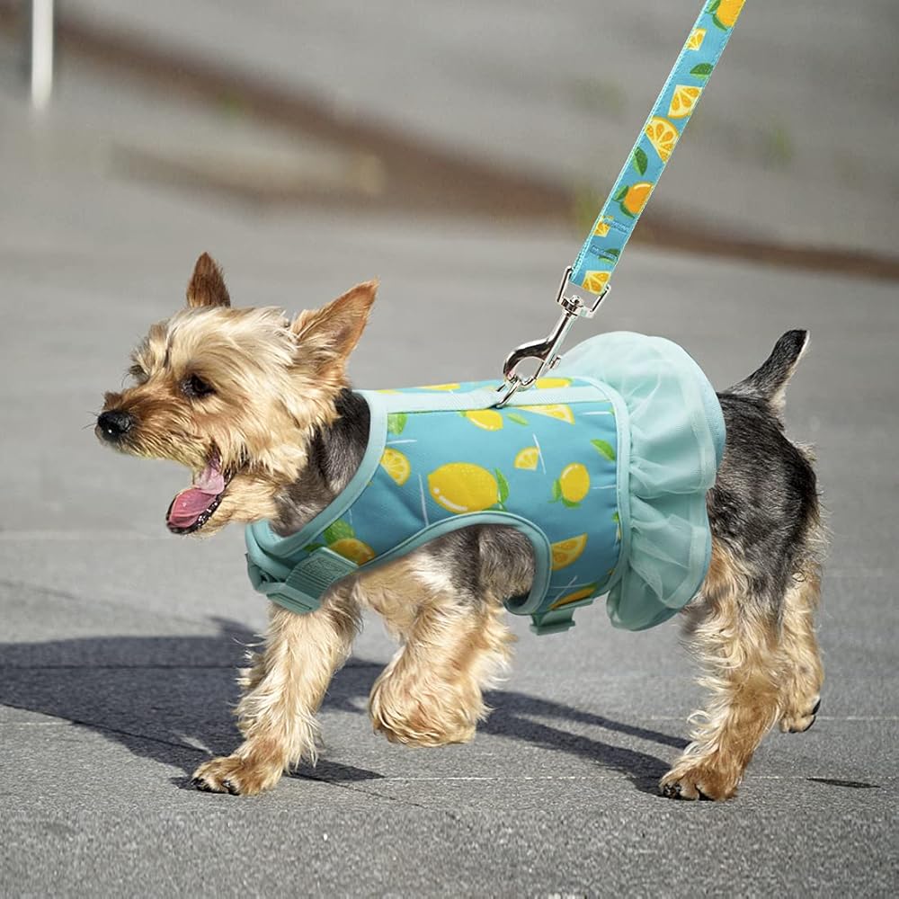 طقم فستان ومقود للكلاب - سرج للكلاب بتصميم مجموعة المقود. اجعل من السهل عليك وعلى حيوانك الأليف الخروج. ارتدي فستانًا جميلًا ولطيفًا ومقودًا للذهاب في نزهة مع كلبك.