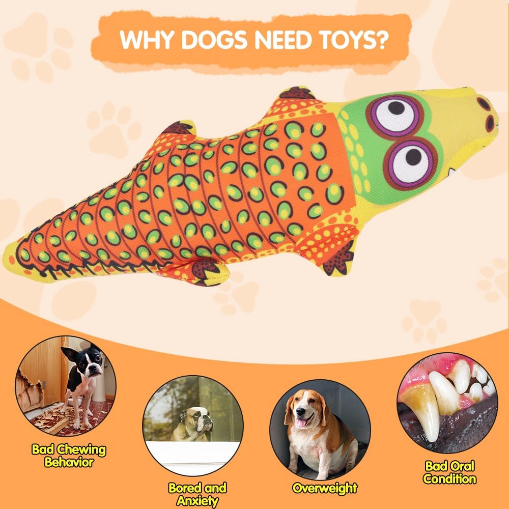 Comfpet Squeak dog toys are made for dogs who adore laying, tugging, digging, and biting on squeaker toys. The soft plush fabric is gentle on the teeth and gums while minimal stuffing is used to prevent major clean-ups after the games are over.