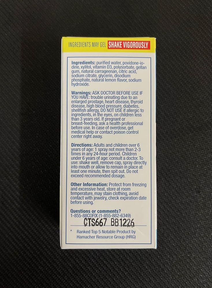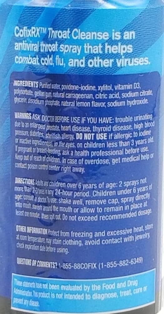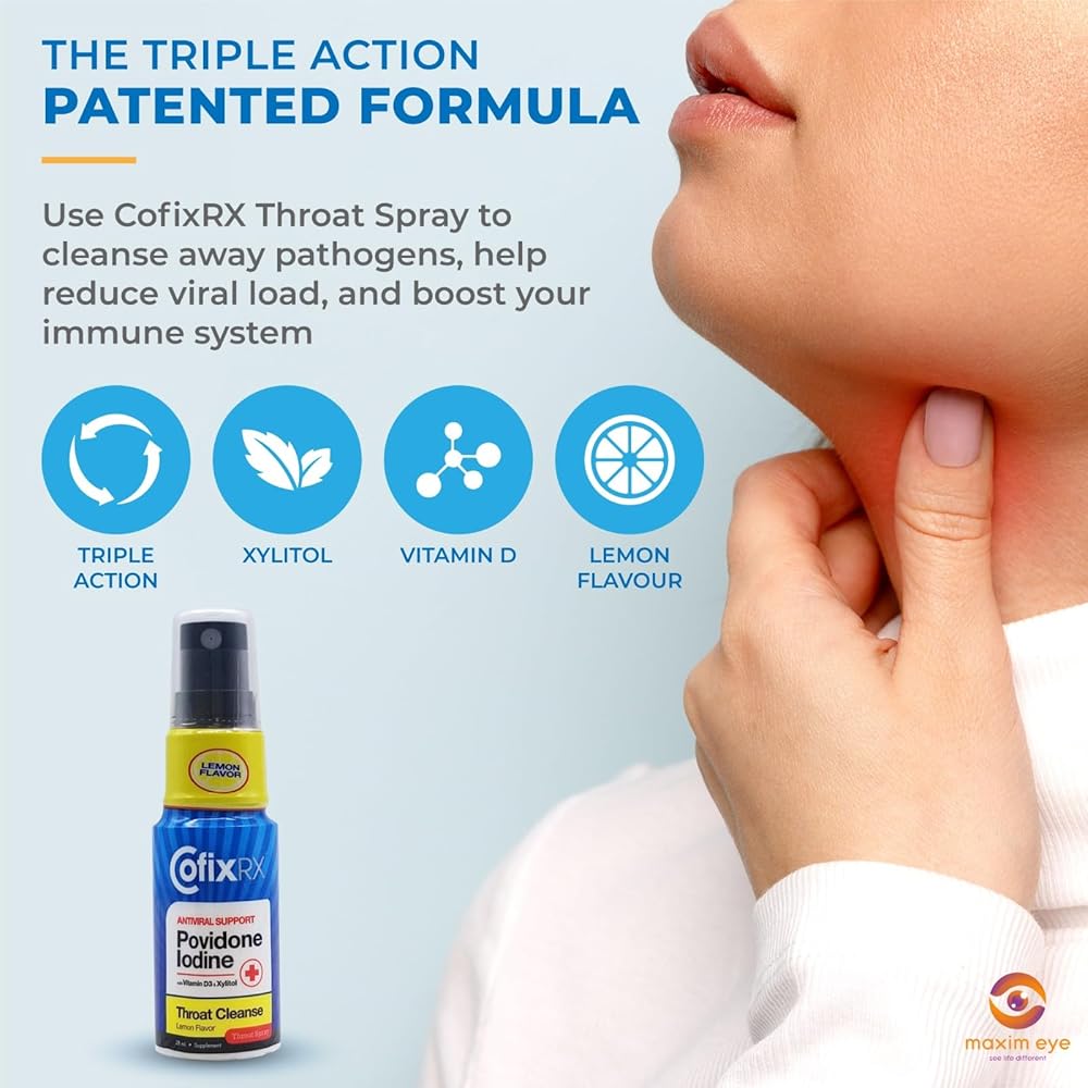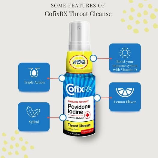 الاستخدام البسيط: ببساطة قم بالرش واستمتع بالنقاء. مناسب للاستخدام اليومي. يتميز CofixRX Throat Spray بتركيبة ثلاثية المفعول حاصلة على براءة اختراع والتي تشمل بوفيدون اليود، والإكسيليتول، وفيتامين د-3.