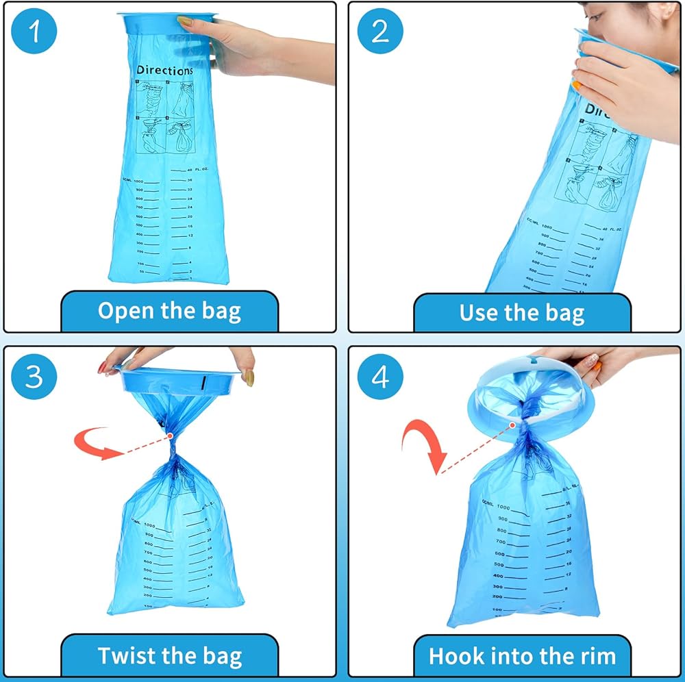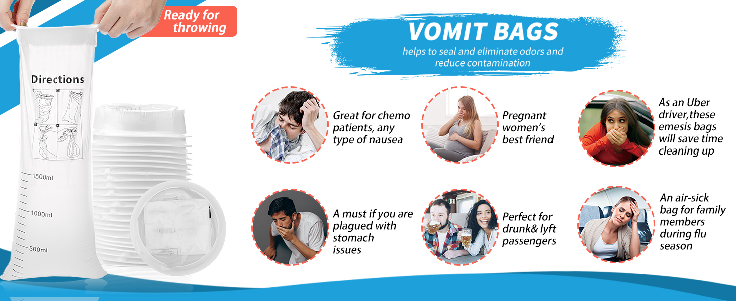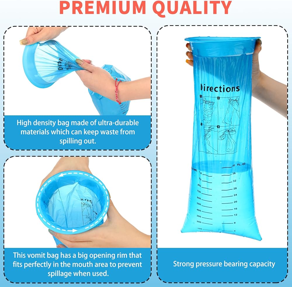 🔥【تطبيق واسع】: مثالي للاستخدام في السفر والمنزل والمستشفى والمكتب. يستخدم على نطاق واسع عند النساء الحوامل والأطفال الذين يعانون من دوار السيارة ومشاكل المعدة والأشخاص المخمورين. بالإضافة إلى ذلك، فإن أكياس البارف هذه هي أيضًا أفضل البدائل لأكياس قمامة السيارات وأكياس التخلص من النفايات وأكياس البول التي تستخدم لمرة واحدة.
