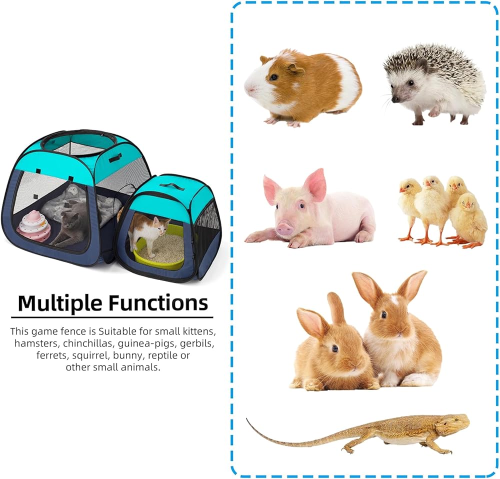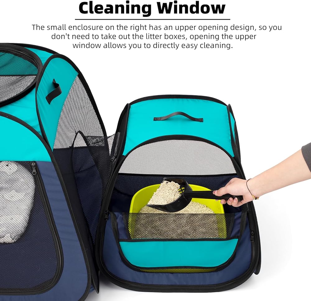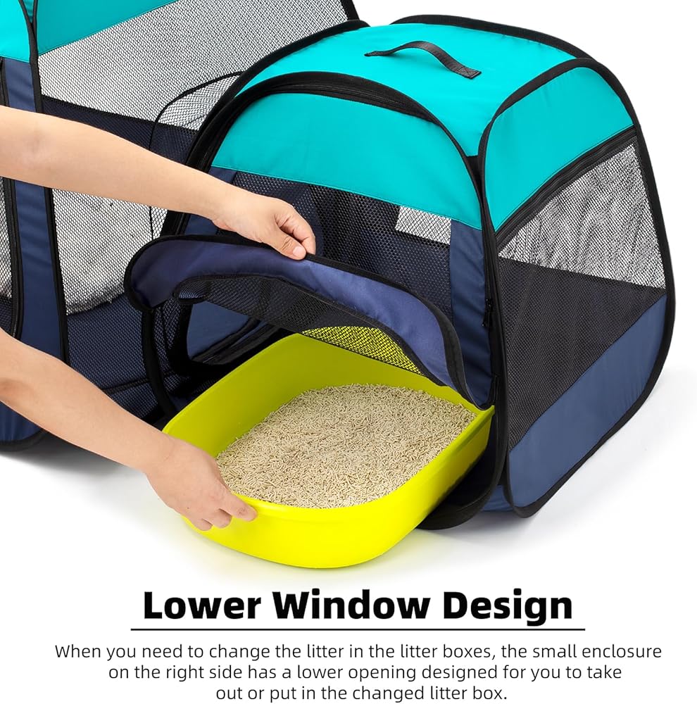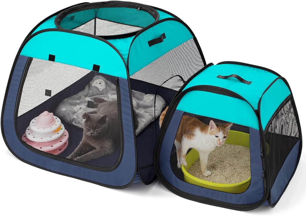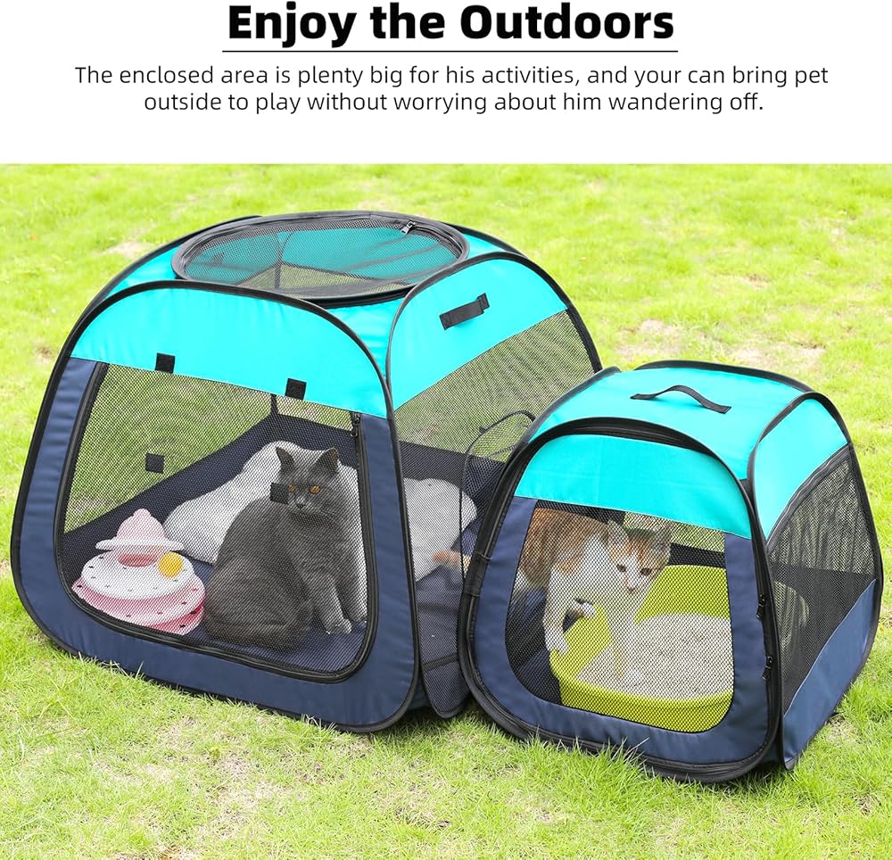 تين راي قفص لعب محمول للقطط، تصميم شبه منحرف لوقوف أفضل، خيمة للحيوانات الاليفة قابلة للطي للاستخدام الداخلي والخارجي للجراء والقطط، حاوية لعب للكلاب مع قاعدة قابلة للازالة، بيوت وشقق للقطط