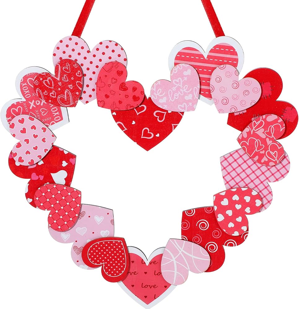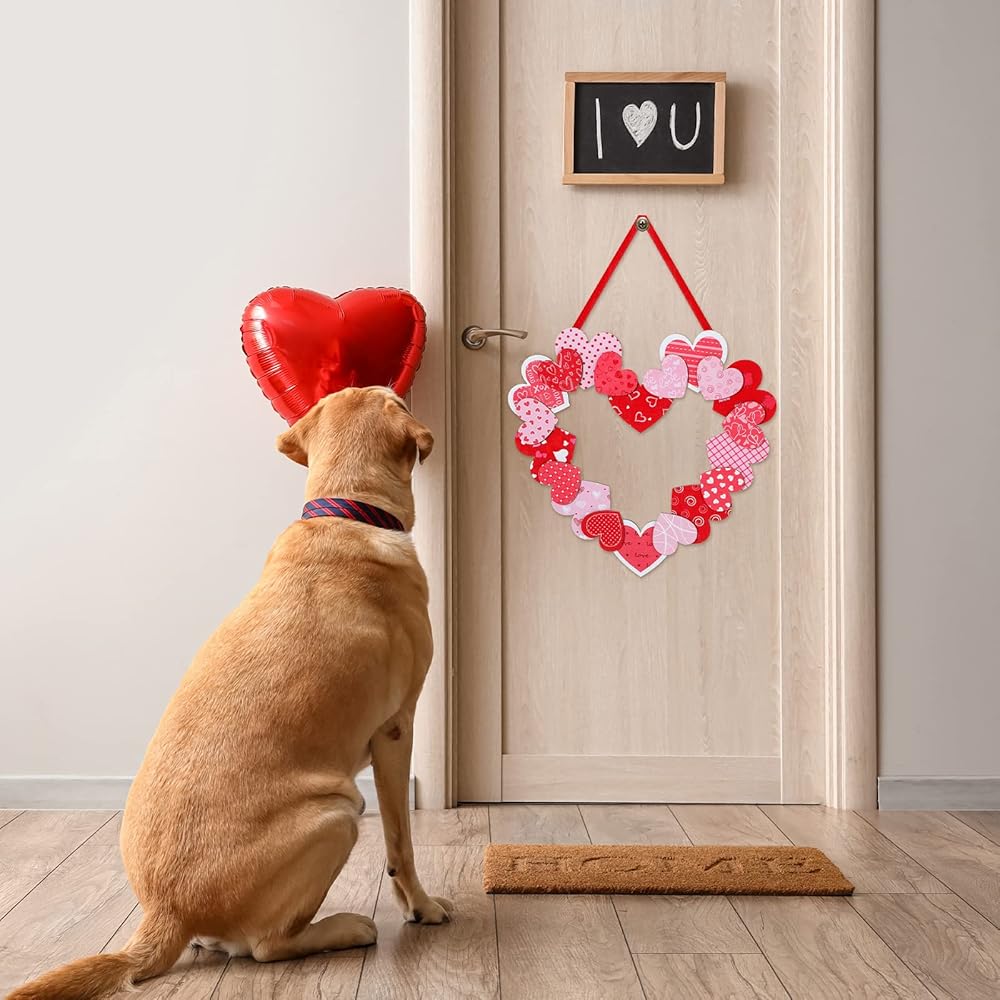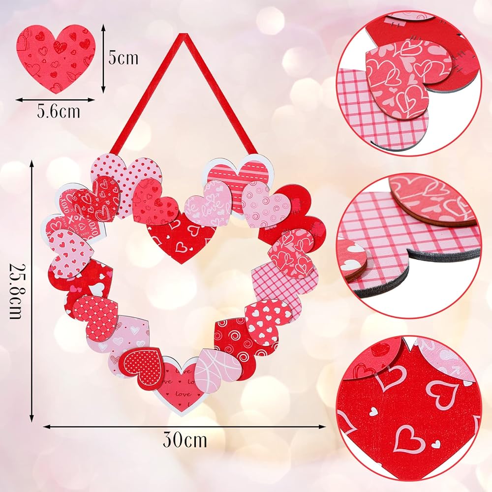 صناعة متقنة: إكليل عيد الحب على شكل قلب للباب الأمامي الخارجي مصنوع من مواد خشبية عالية الجودة، موثوقة، متينة، مطبوعة بوضوح، قابلة لإعادة الاستخدام، وليس من السهل أن تبهت أو تنكسر، مما يوفر لك استخدامًا لفترة طويلة