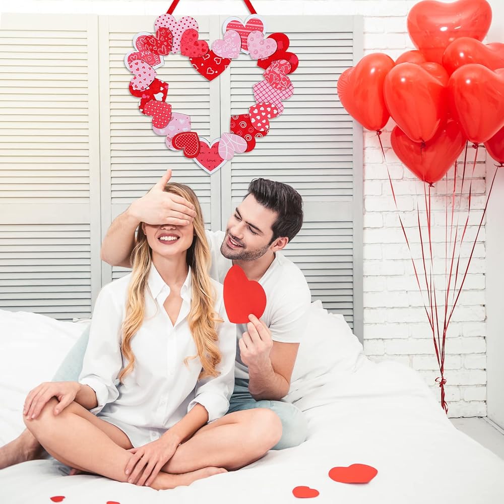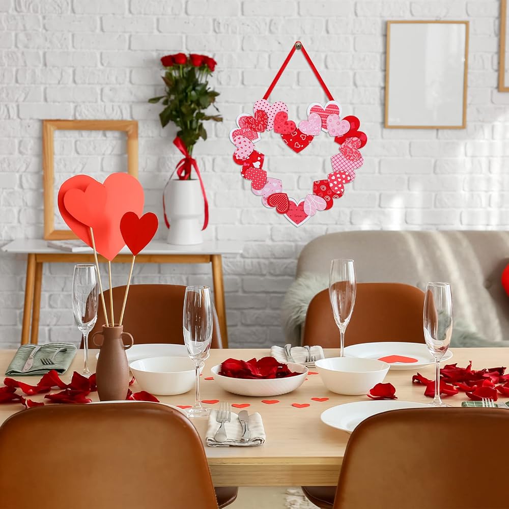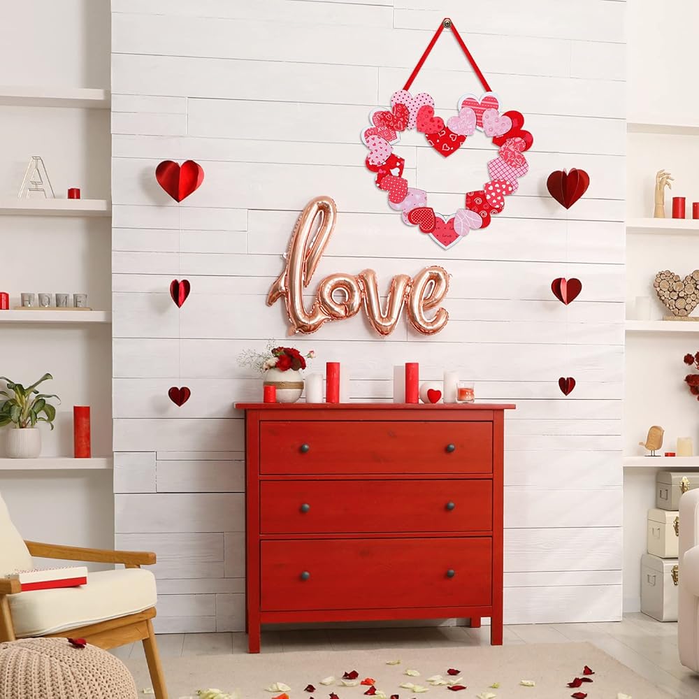 لافتة معلقة على الحائط بتصميم قلب لعيد الحب رقيقة وجذابة، مما يدل على حبك ويمكن أن تضيف لونًا إلى ديكوراتك الداخلية والخارجية.