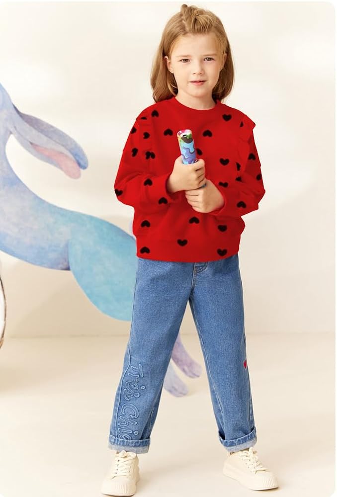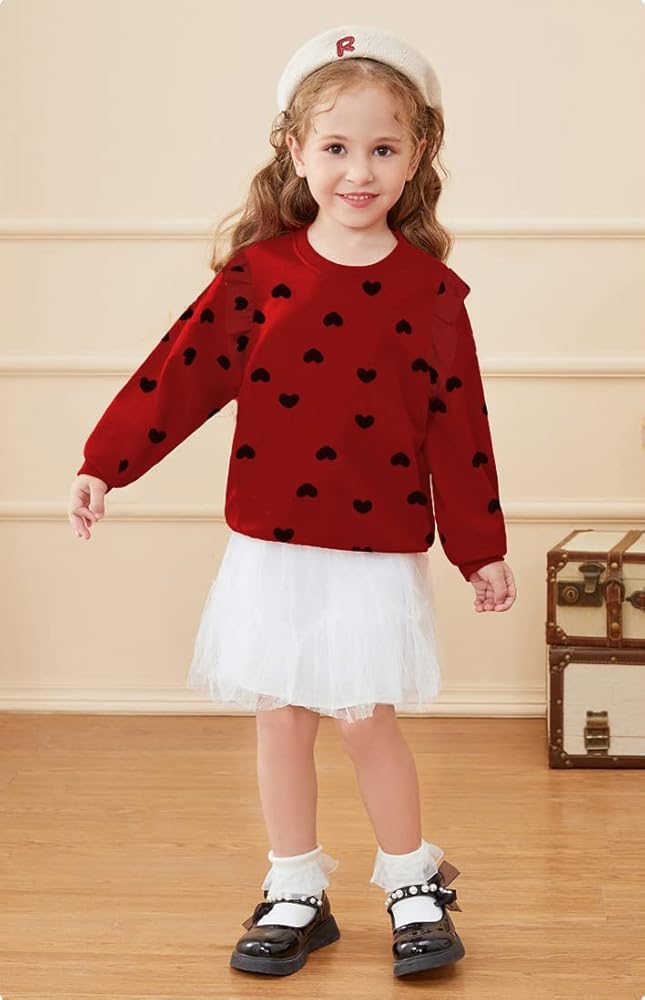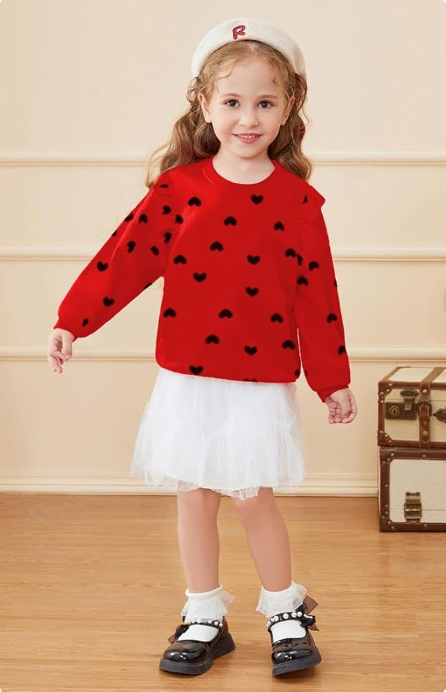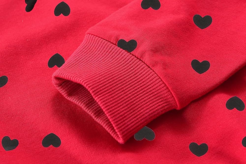 • ❥نمط بلوفر لطيف --- سترة عيد الحب للفتيات بتصميم طباعة قلب لطيف ستجعل فتاتك تبدو أكثر جمالاً، وسهلة الارتداء والخلع، والتصميم الجذاب يحظى بشعبية كبيرة لدى كل فتاة.