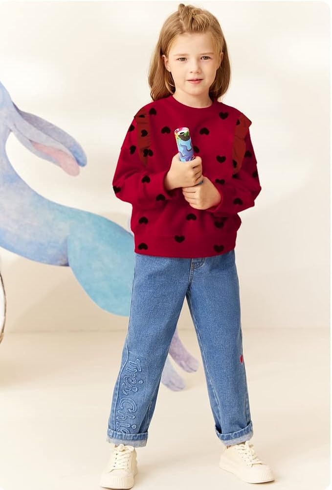 • ❥سويت شيرت للفتيات لعيد الحب --- 100% قطن، السترة مصنوعة من نسيج قطني عالي الجودة، فائق النعومة والراحة، مسامي ومتين، لا يتكبد أو يبهت أو تشوه، يعتني ببشرة طفلك الحساسة.