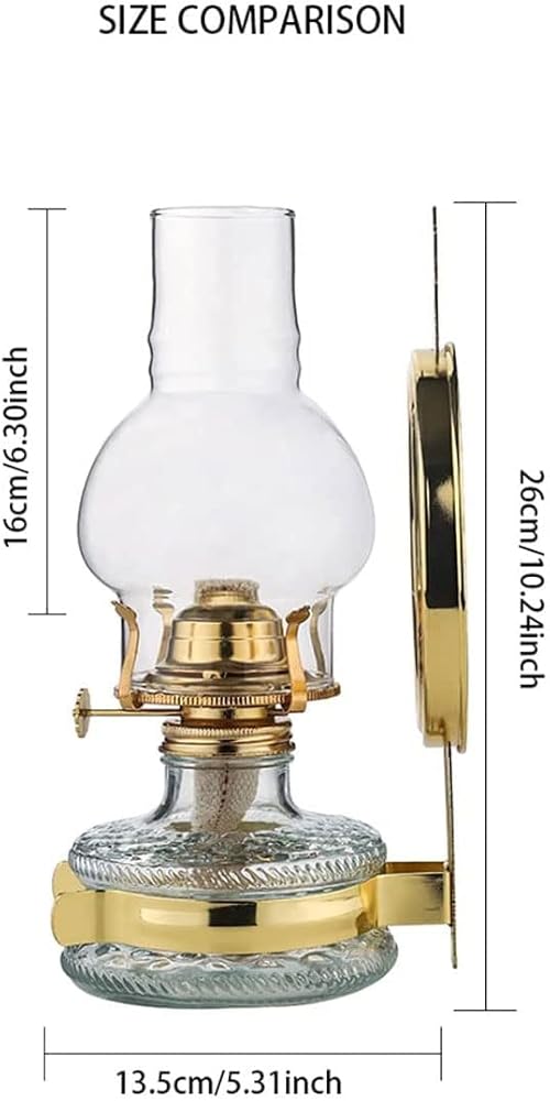 الحجم والاحتياطات: حجم مصباح الكيروسين الزجاجي 11 × 5.1 انش، بسعة 300 مل/10.8 اونصة. تحتاج فقط إلى ملء مصباح الزيت بنسبة 70% من الزيت بدلاً من 100%، وهو لمنع التسرب وضمان الاستخدام العادي.