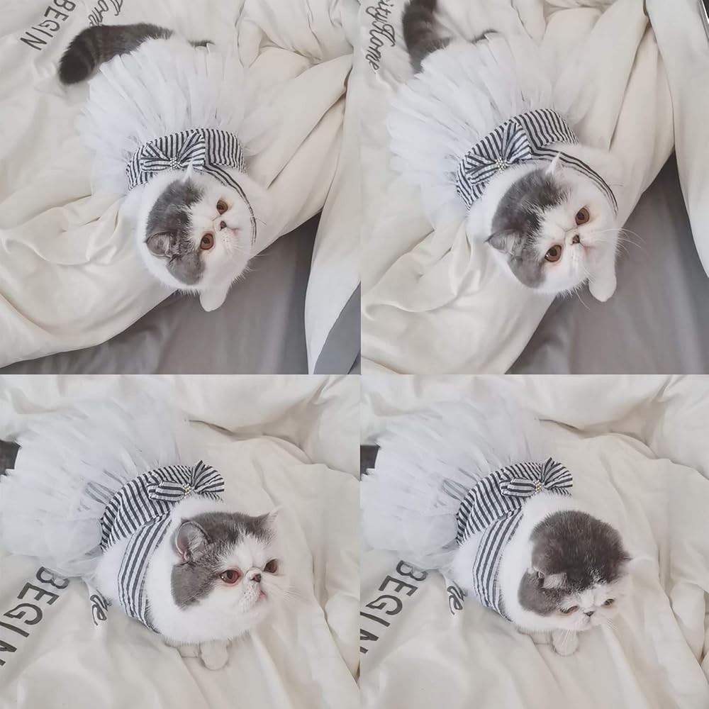 Pet Dog Dress for Girl and Boy Doggy Cats Rabbit Fancy Tutu Adorable Striped Mesh Dress Princess Petite Vest Doggie Bowknot Dresses for Small Dogs Pomeranian Chihuahua Skirt Pet Puppy Supplier(Blue S)